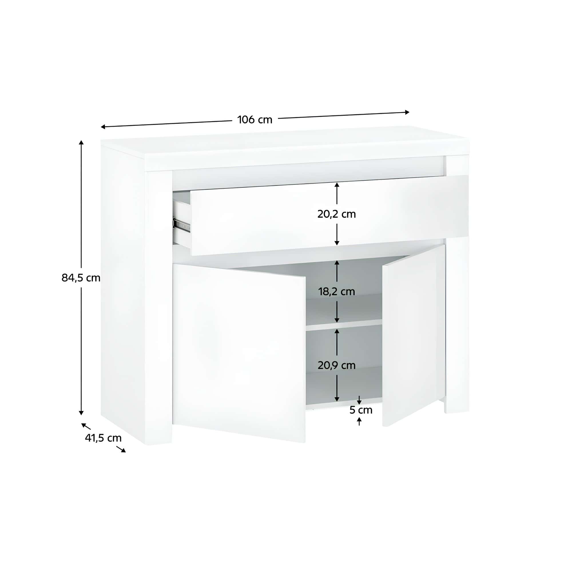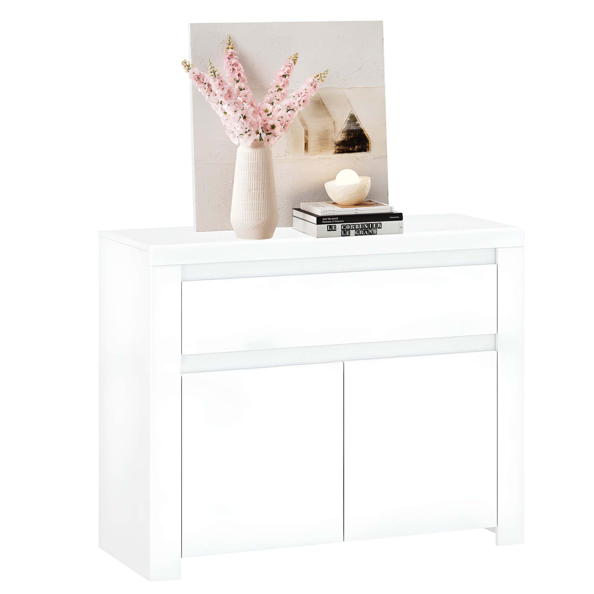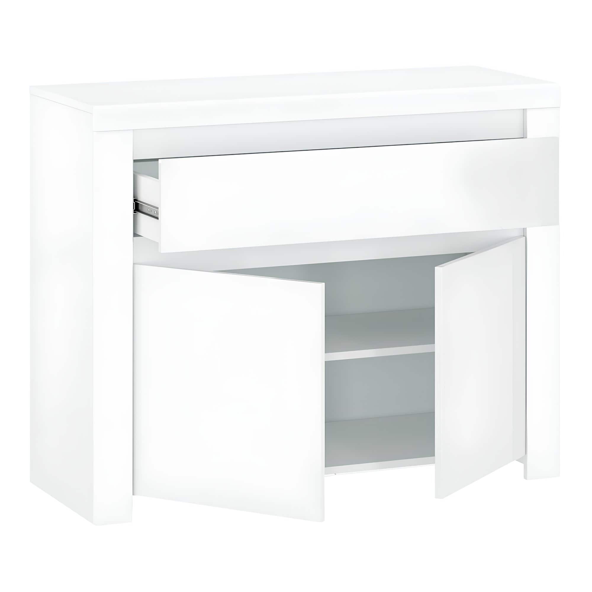 Comodă 2D1S, alb lucios, LINDY
