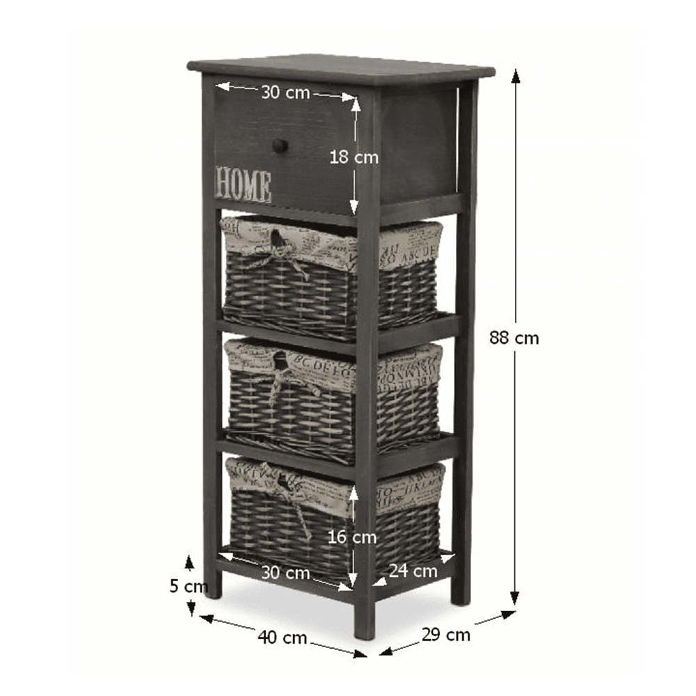 Cu un sertar funcţional şi 3 coşuri de răchită,