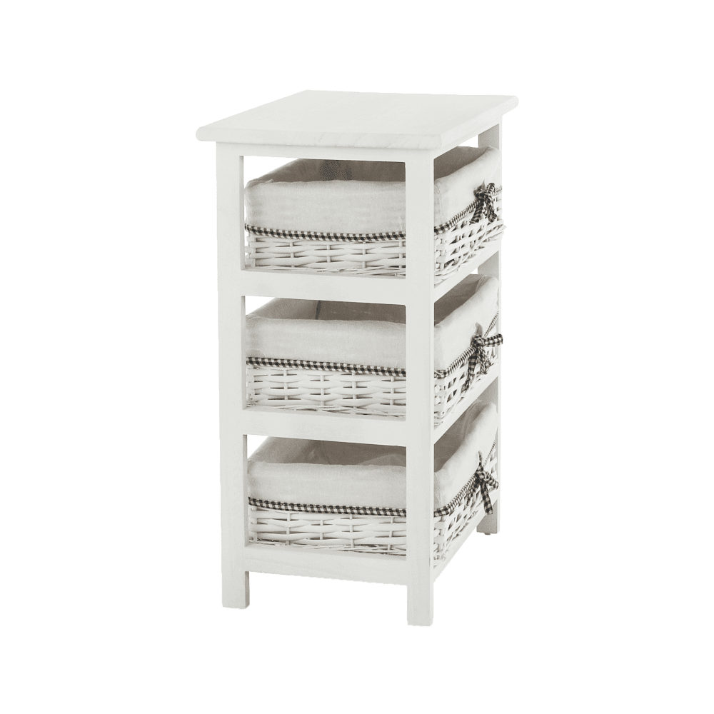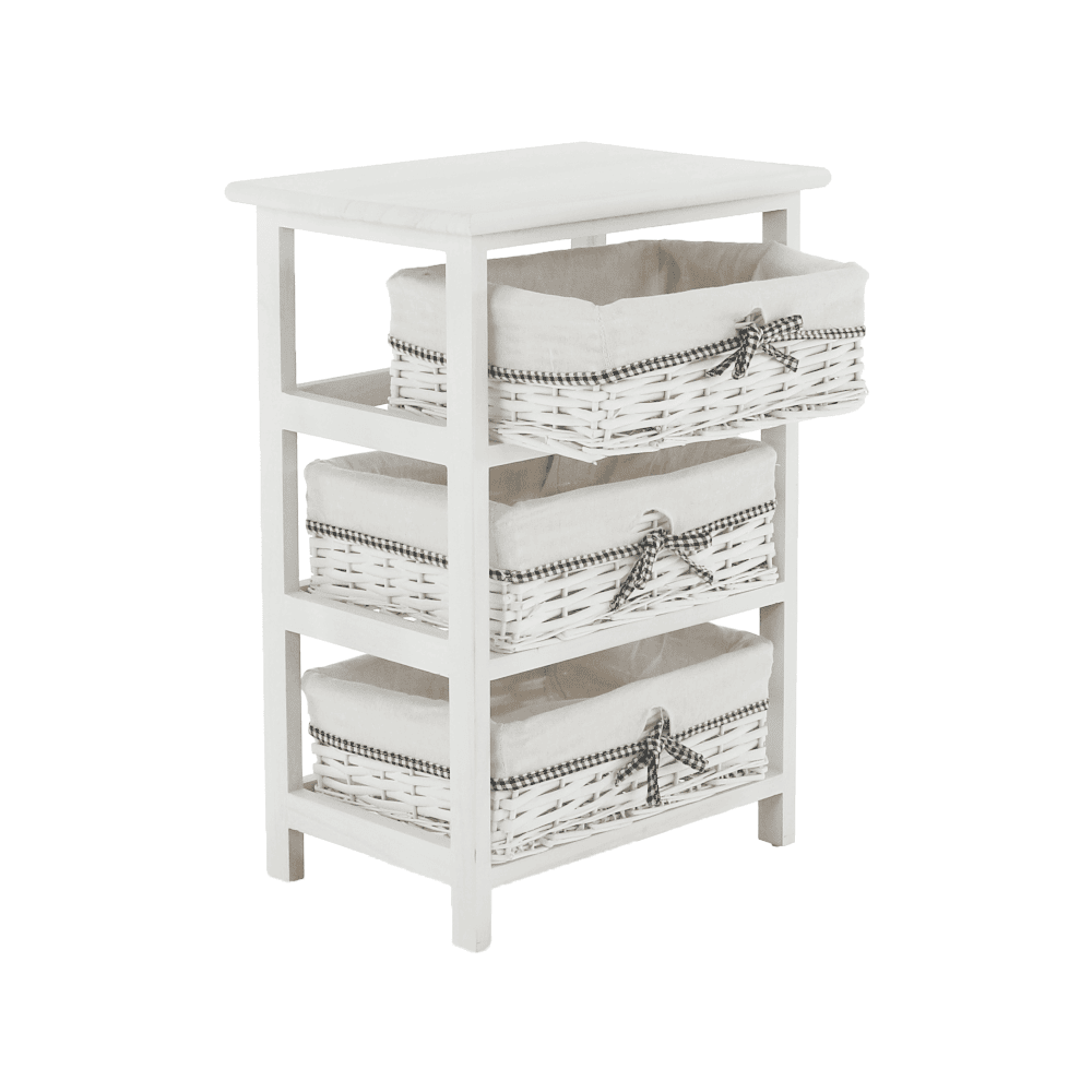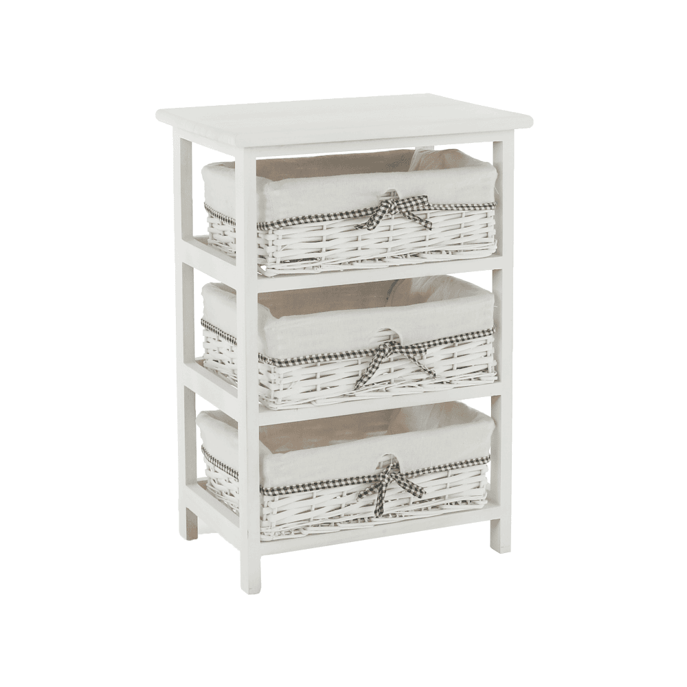 Comodă, 3 coşuri, alb antichizat, RUBY 3