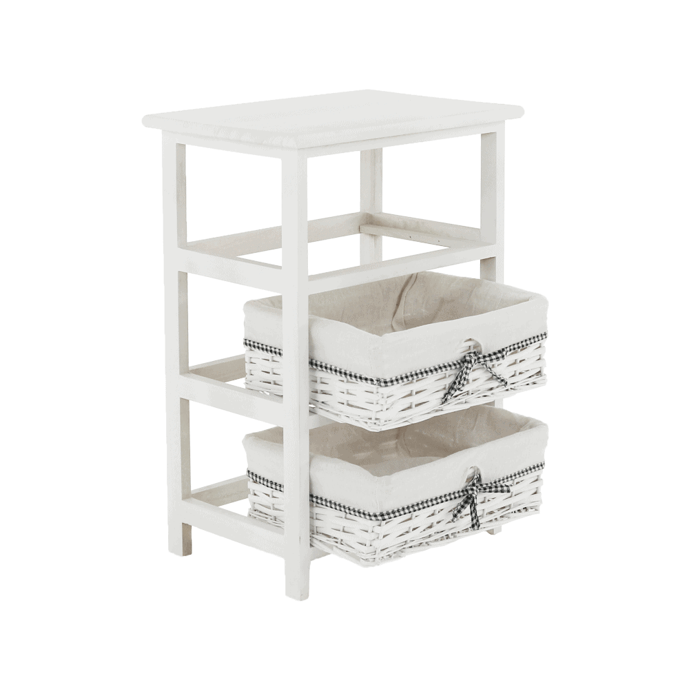 Comodă, 2 coşuri, alb antichizat, RUBY2