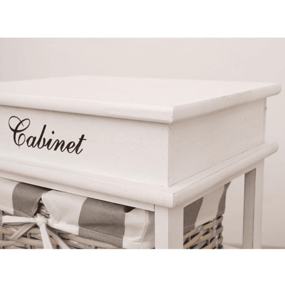 Comodă, 4 coşuri, gri/alb, MANON 4