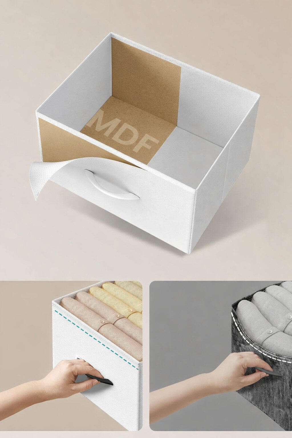 - MDF Material sertare: material textil netesut + structura