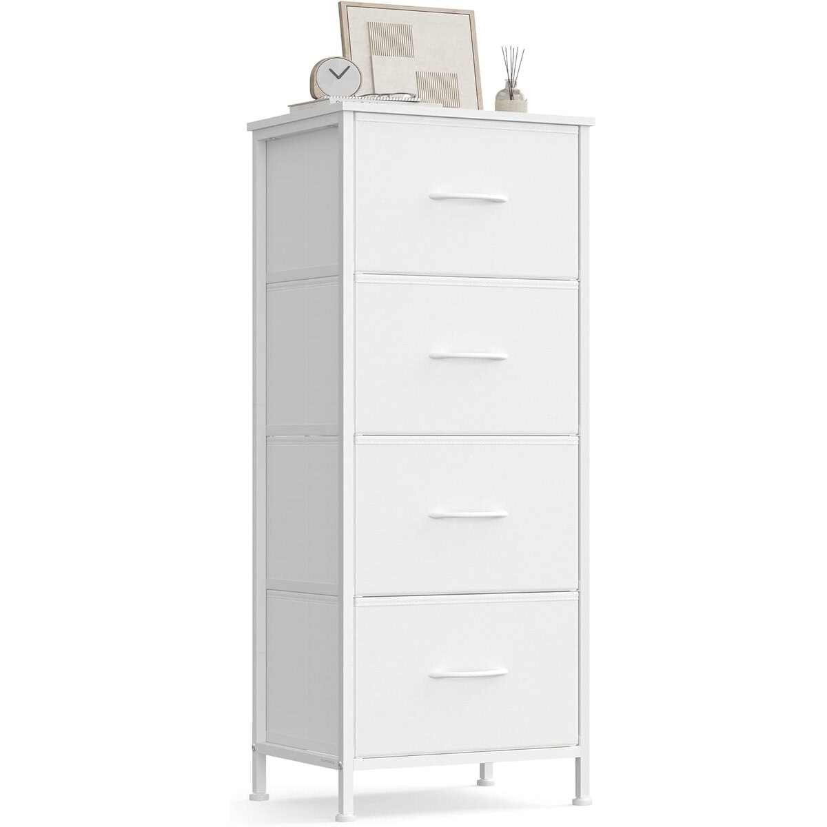 Comoda cu 4 sertare textile, cadru metalic si blat MDF, 40x30x95 cm, alb Mob360