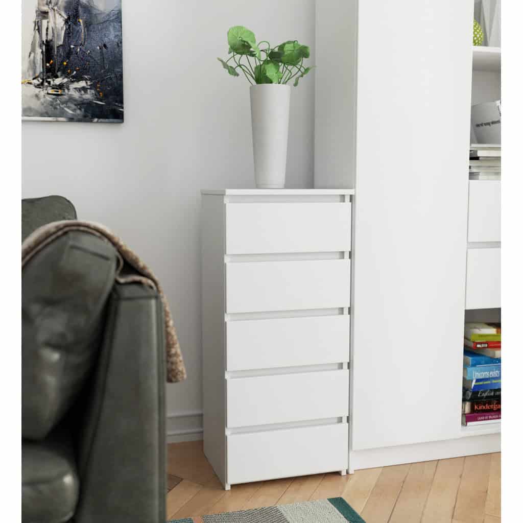 Comoda cu 5 sertare, PAL laminat, 40x35x92 cm, alb mat Mob360