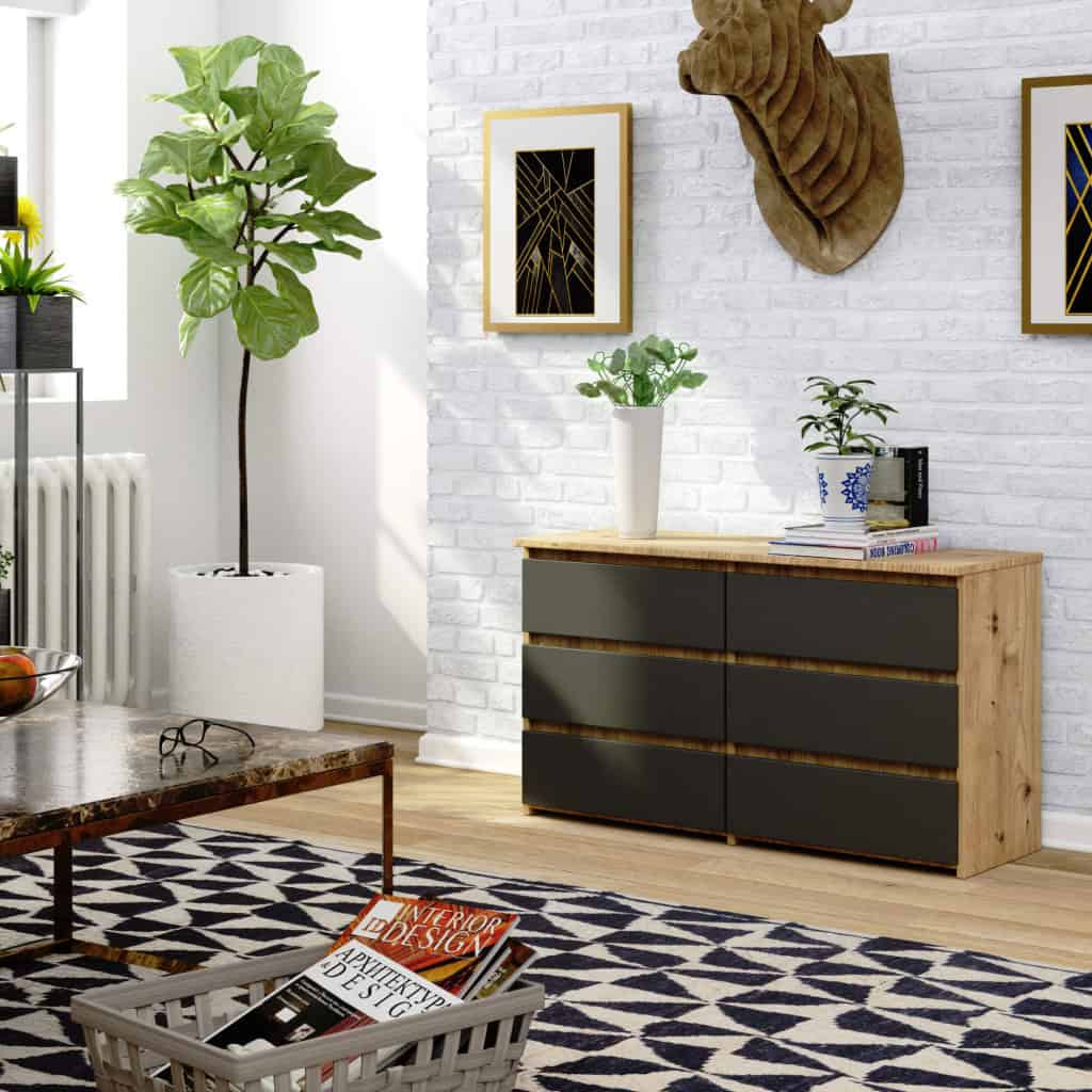 Comoda cu 6 sertare, PAL laminat, 100x35x57 cm, stejar artisan si gri Mob360