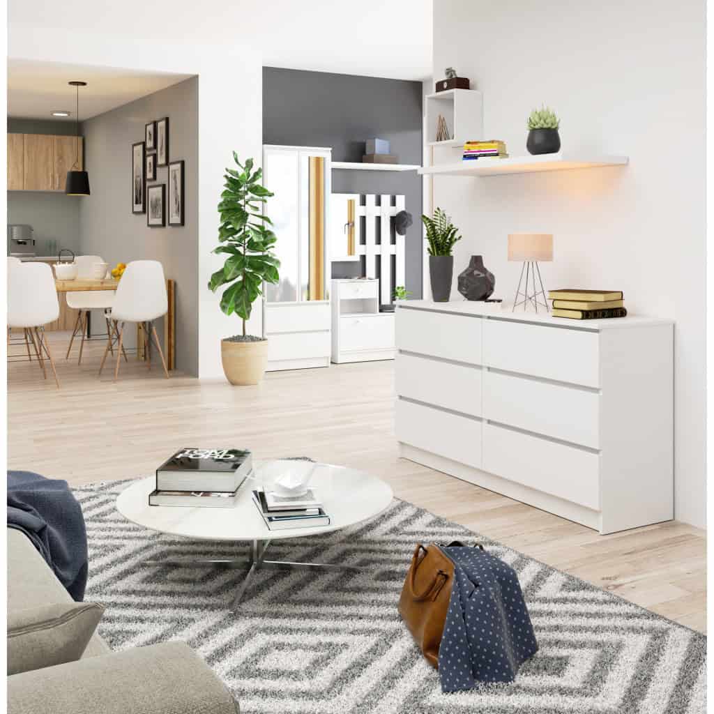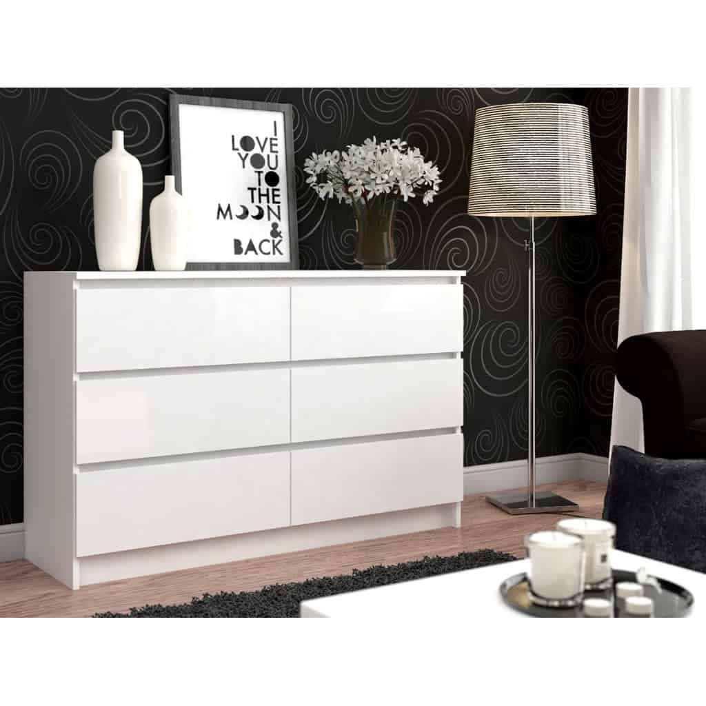 Comoda cu 6 sertare, PAL laminat, 138x40x77 cm, alb mat Mob360