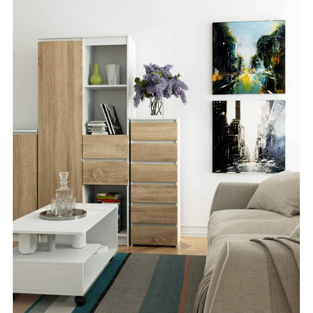 Comoda cu 6 sertare, PAL laminat 16 mm, 40x35x109 cm, alb si stejar sonoma Mob360