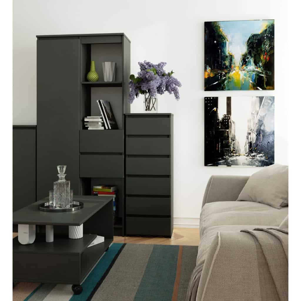 Comoda cu 6 sertare, PAL laminat 16 mm, 40x35x109 cm, gri Mob360