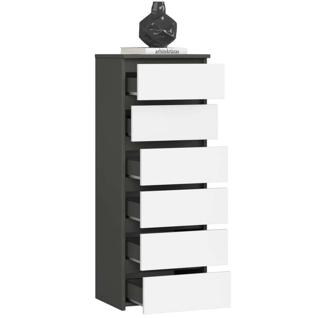Comoda cu 6 sertare, PAL laminat 16 mm, 40x35x109 cm, gri si alb Mob360