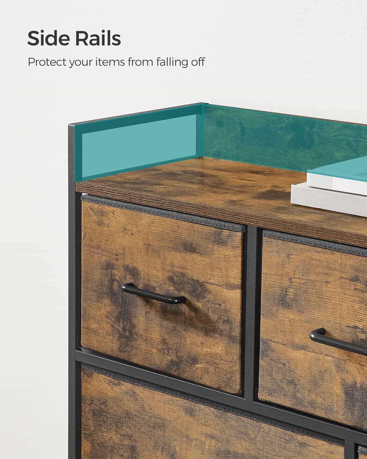 Comoda cu cadru metalic si 7 sertare din textil, stil industrial, 98x29x85cm, maro rustic si negru Mob360