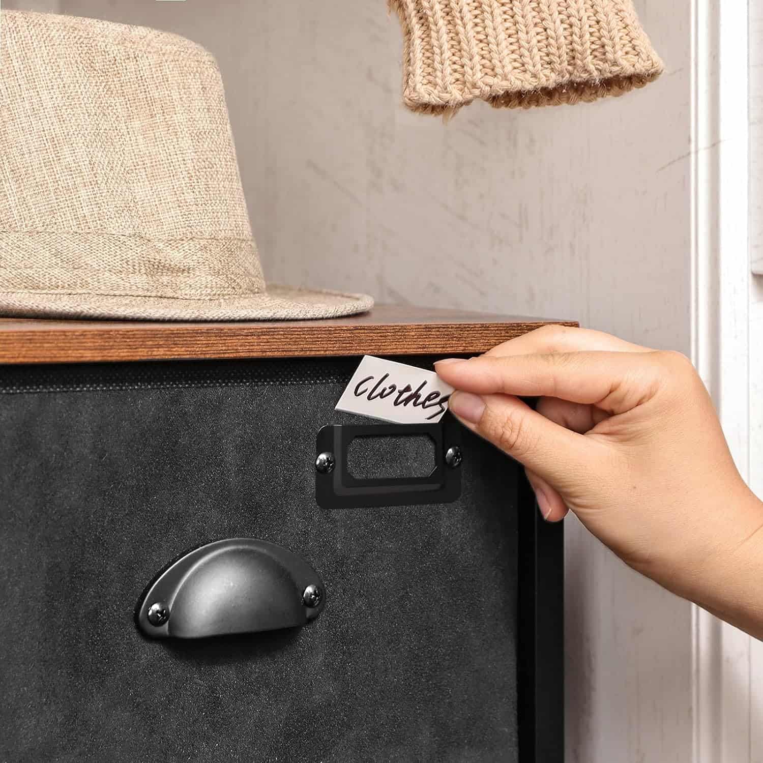 Specificatii: Culoare: Maro rustic, negru Material: MDF (panou de fibre de densitate medie), metal, fata din tesatura de piele de caprioara, fund din tesatura Oxford Dimensiunea produsului: 80 x 30 x 81,5 cm (L x l x i) Greutatea produsului: 10 kg Max. Capacitate de incarcare statica a blatului de masa: 15 kg Max. Capacitate de incarcare statica a fiecarui sertar: 3 kg Despre acest articol La revedere haos! Aceasta comoda spatioasa din stofa cu 8 sertare va va ajuta sa va faceti ordine in casa.Cu etichete pe fiecare sertar, este mult mai usor sa gasiti ceea ce aveti nevoie.O suprafata rustica, combinata cu un cadru metalic negru, da viata unui stil industrial fermecator. Dar cum ramane cu detaliile? Partea frontala din piele de caprioara falsa si manerele metalice sunt cireasa de pe tort!Tesatura, metal si lemn prelucrat: Acest trio de soc lucreaza mana in mana pentru a va oferi o comoda stabila, durabila si in acelasi timp usoara, pregatita sa sustina colectia dvs. de haine.Este livrat cu instructiuni detaliate si cu instrumentul de asamblare necesar pentru o montare usoara.