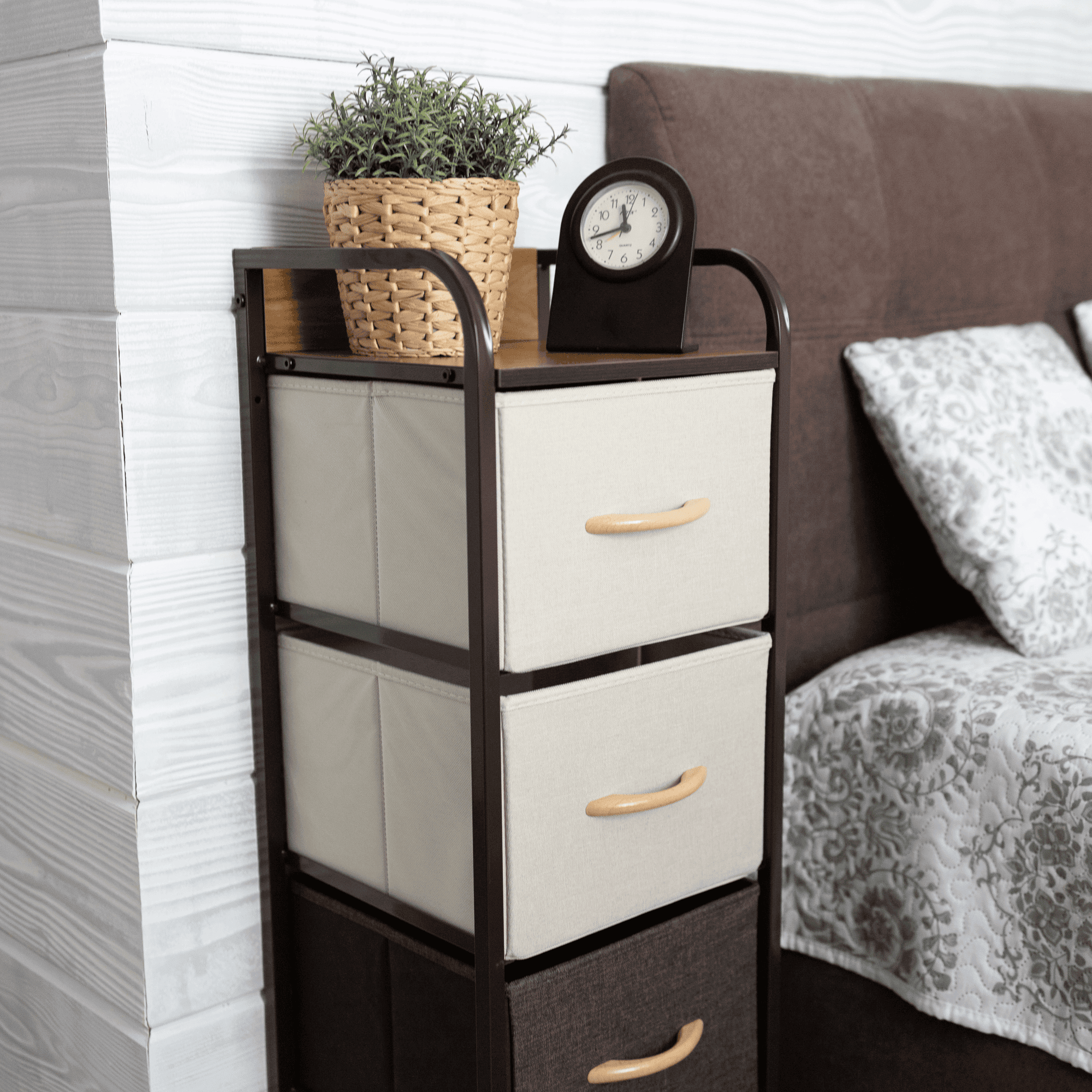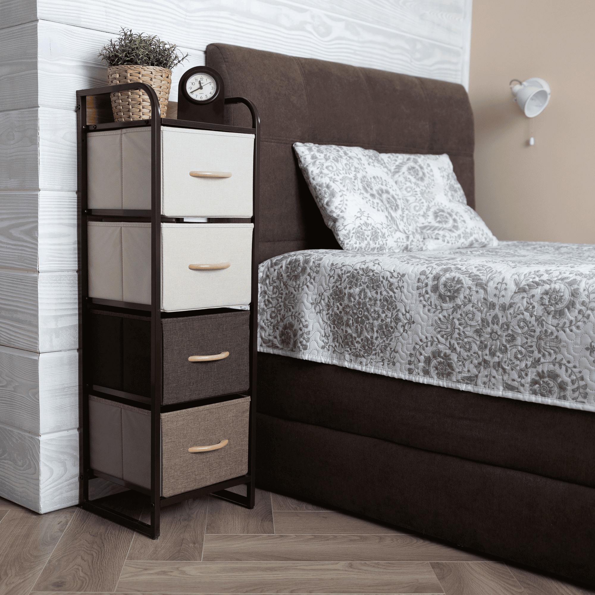 Comodă cu sertare din material textil, bej/maro deschis/maro închis, HAZEL TYP 1