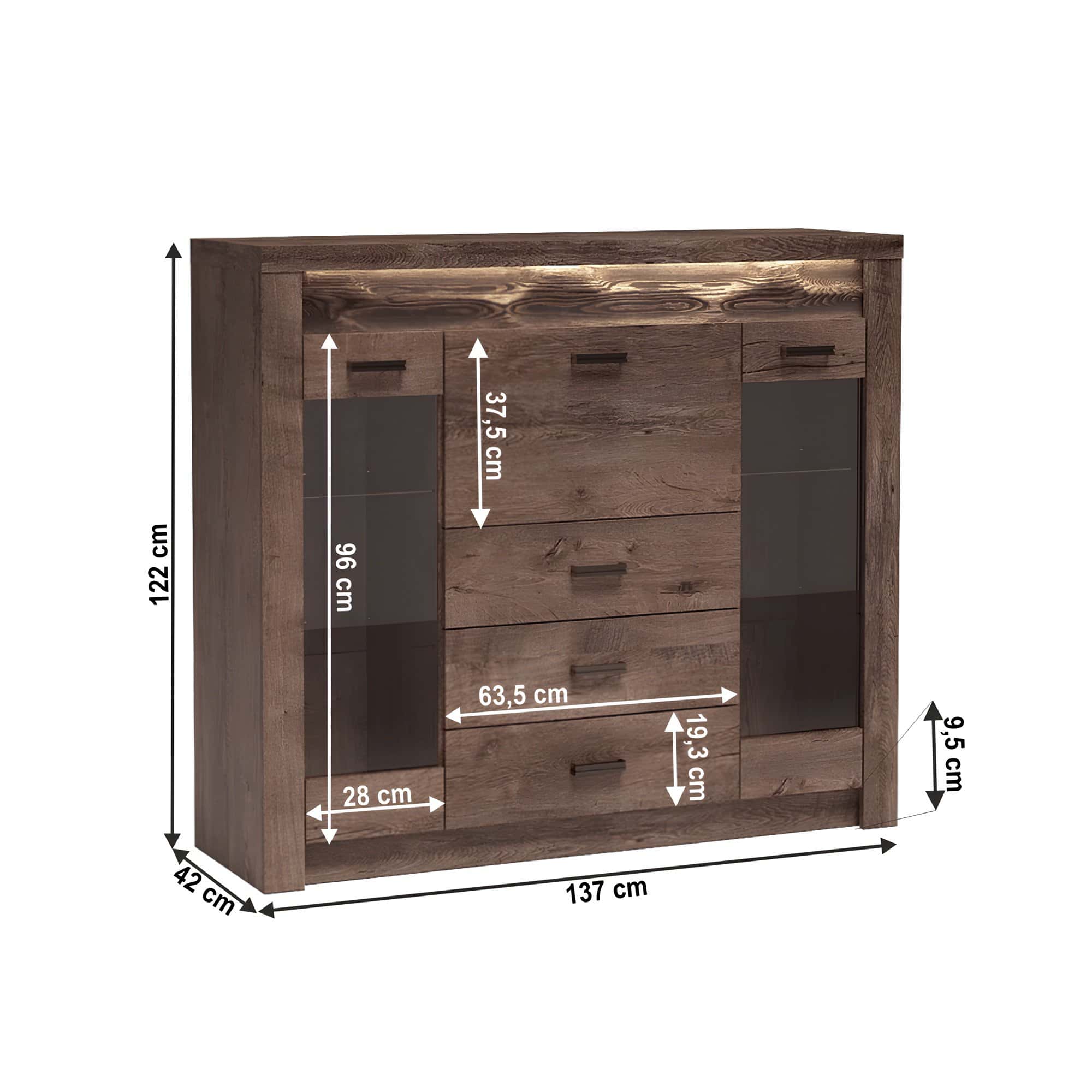 Comodă cu vitrină, frasin închis, INFINITY 08