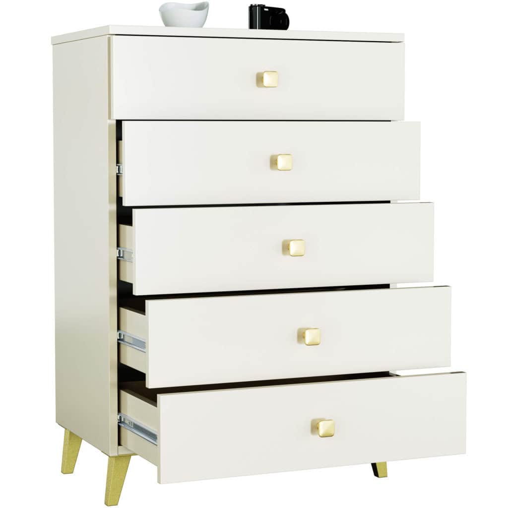Comoda MOBI K-05, 5 sertare, 60x37x89 cm, casmir cu detalii aurii Mob360