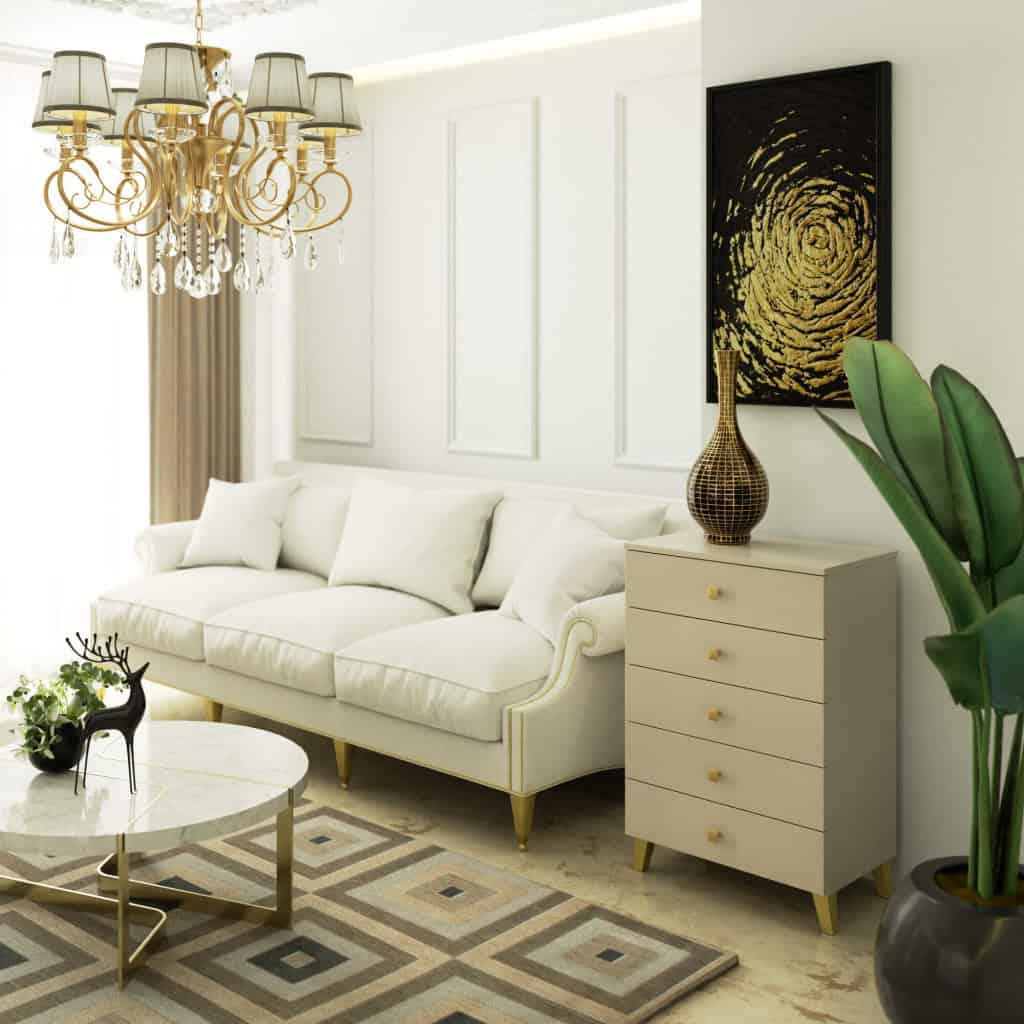 Comoda MOBI K-05, 5 sertare, 60x37x89 cm, casmir cu detalii aurii Mob360 – produs disponibil în magazinul Mob360.