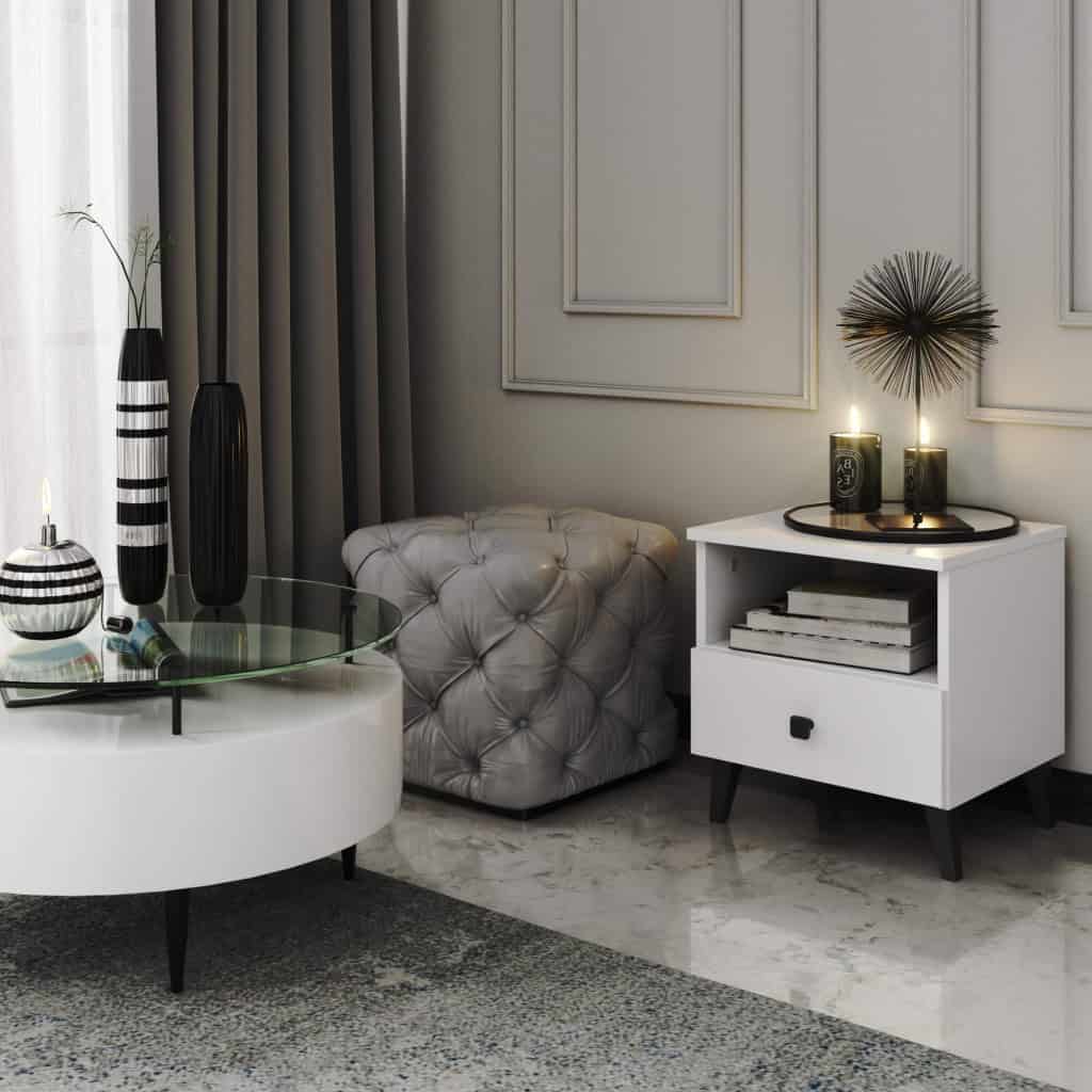 Comoda MOBI K01 cu sertar si raft deschis, PAL laminat 16 mm, 40x37x43 cm, alb si negru Mob360