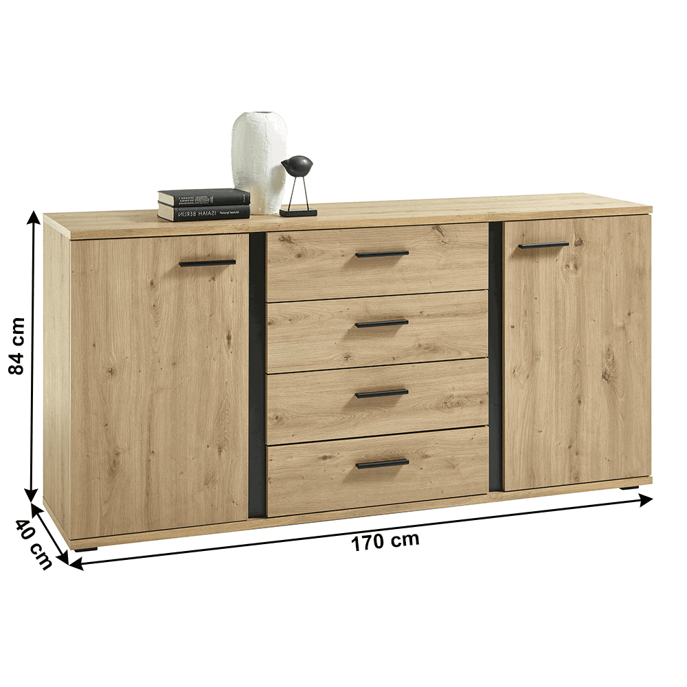 Comodă, stejar artizan / negru, KANODE