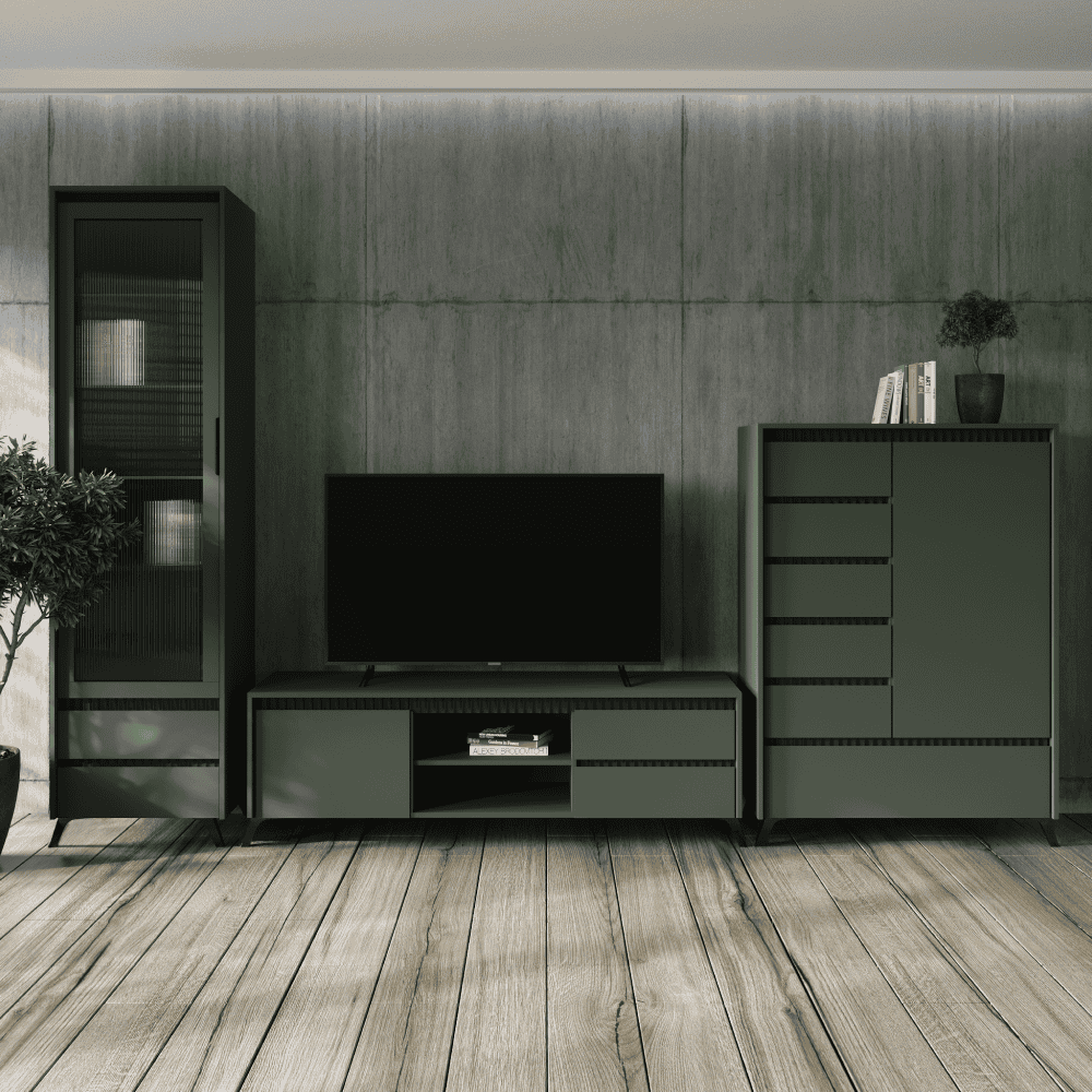 Comodă, verde smoke/negru, LONGY REG2D1S1K