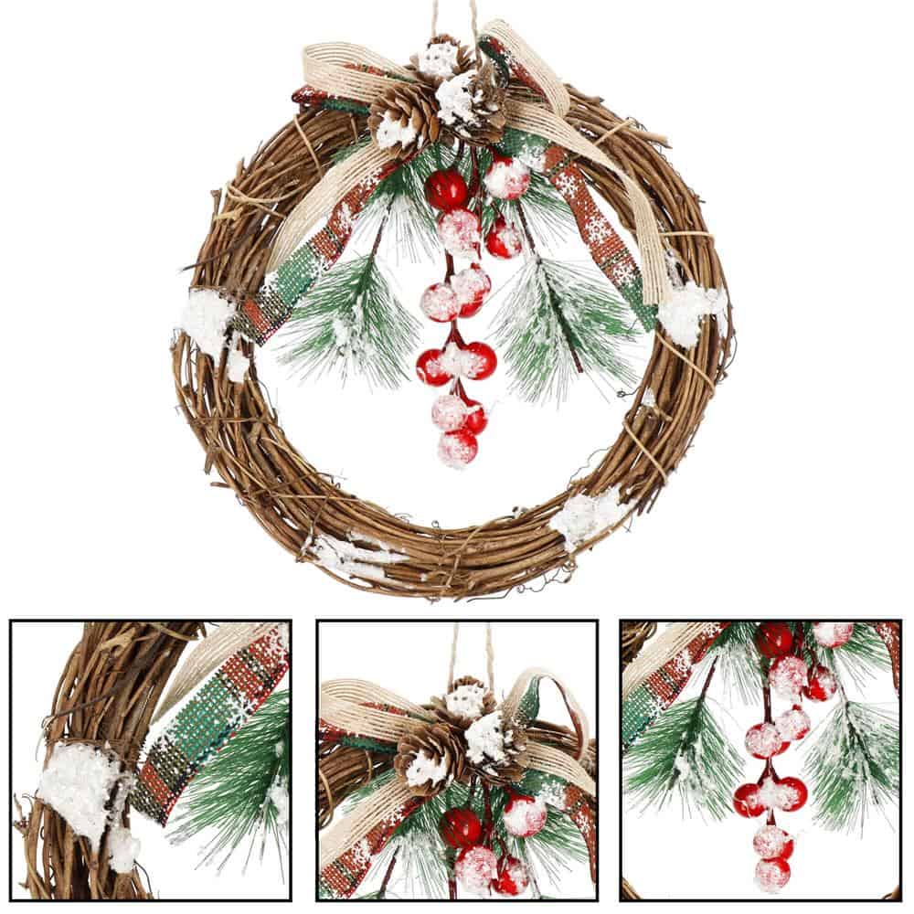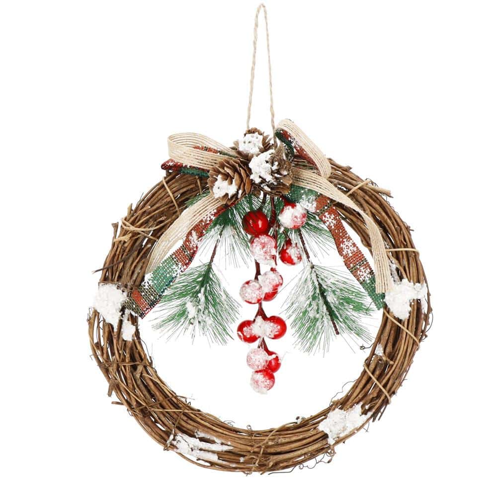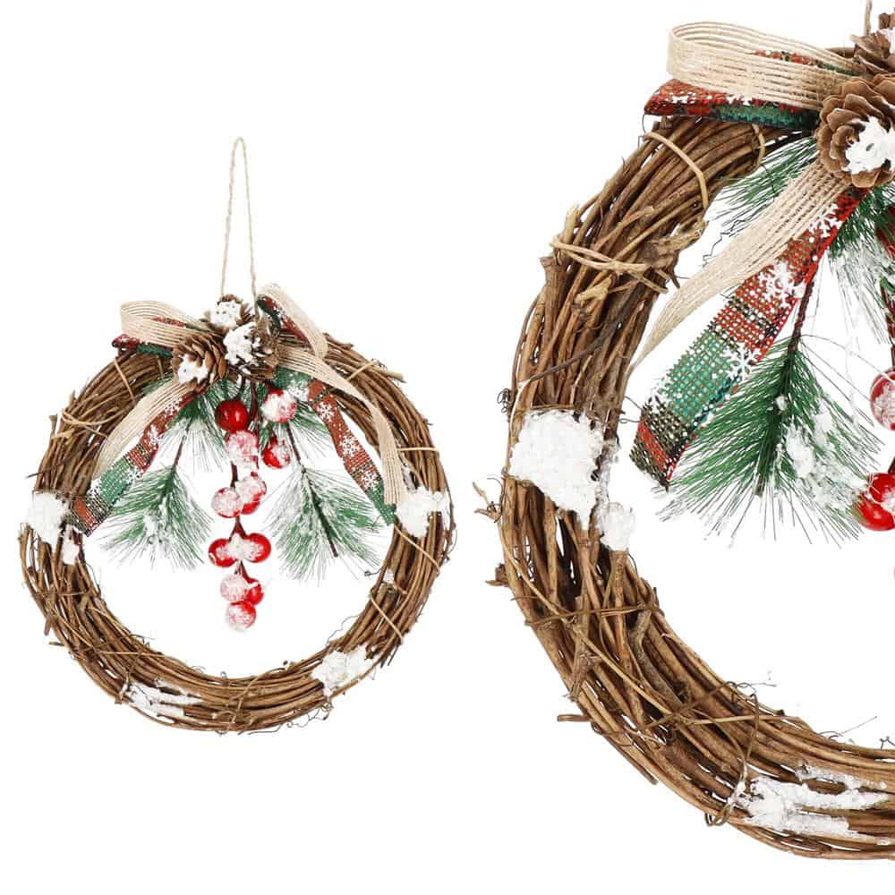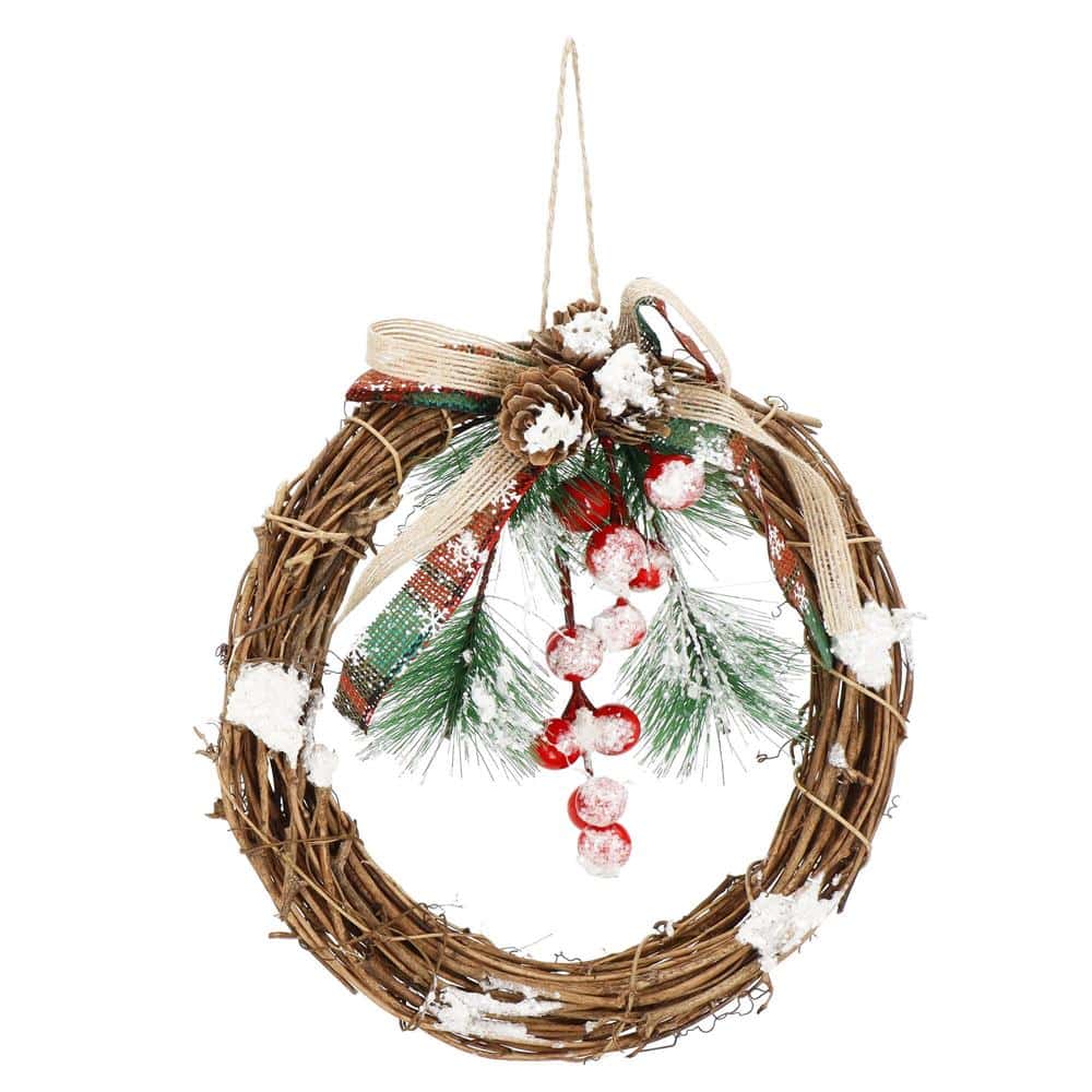 Coronita pentru Craciun, 20 cm, din crengi impletite, cu zapada, maro Mob360 – produs disponibil în magazinul Mob360.