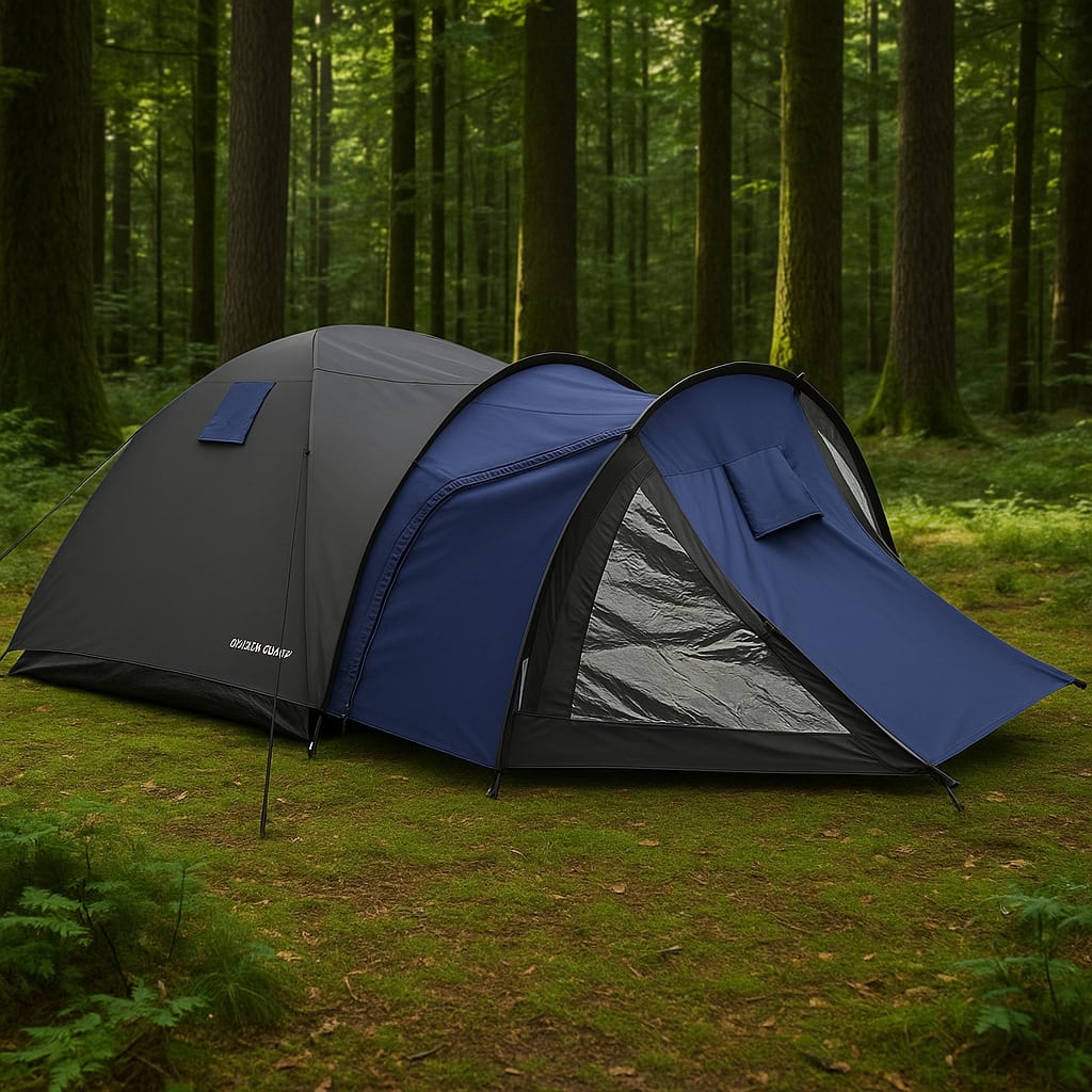 Cort camping 4 persoane cu antreu, impermeabil 3000 mm, 450x210x150 cm, negru si albastru Mob360 – produs disponibil în magazinul Mob360.
