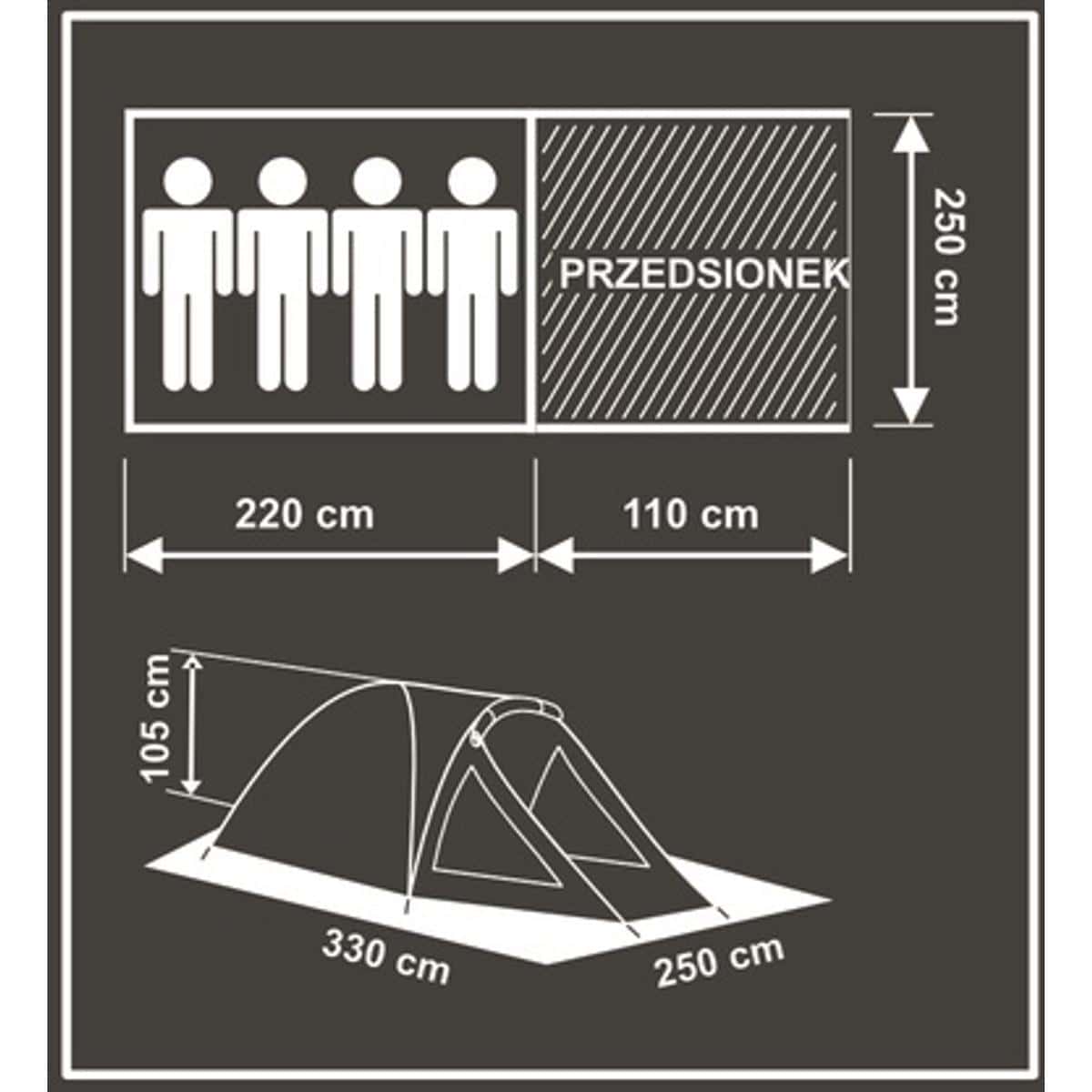 Specificatii tehnice: Capacitate: 4 persoane Dimensiuni exterioare: 330 x 250 x 105 cm (L x l x h) Dimensiuni sfera interioara: 240 x 214 x 95 cm (L x l x h) Dimensiuni antreu: 250 x 110 cm Dimensiuni intrare: 100 x 90 cm Material sfera interioara: Poliester 170T cu plasa si moskitiera Material tropic: Poliester 190T cu acoperire PU, cusaturi lipite Material podea: PE 120 g/m² Structura: Fibra de sticla (2×8,5 mm + 1×7,9 mm) Rezistenta la apa: 3000 mm coloana de apa Protectie UV: Da, UV+50 Rezistenta la foc: Da Accesorii incluse: Cuie metalice, sfori de ancorare, geanta de transport Buzunare interioare: Da Agatatoare centrala: Da Scurta descriere Cortul Comfort de la Enero Camp ofera adapost fiabil pentru 4 persoane si este alegerea ideala pentru camping, vacante in natura sau festivaluri. Datorita materialelor impermeabile si structurii stabile din fibra de sticla, vei beneficia de protectie in orice conditii meteo. Caracteristici principale Capacitate 4 persoane, ideal pentru familie sau grup de prieteni Antreu spatios pentru depozitare echipament Protectie UV+50 si impermeabilitate 3000 mm Cusaturi lipite pentru rezistenta sporita la ploaie Moskitiere pe intrare si ferestre pentru protectie antiinsecte Structura usoara din fibra de sticla, usor de montat Include buzunare interioare si agatatoare pentru lanterna Ambalat compact in geanta de transport inclusa