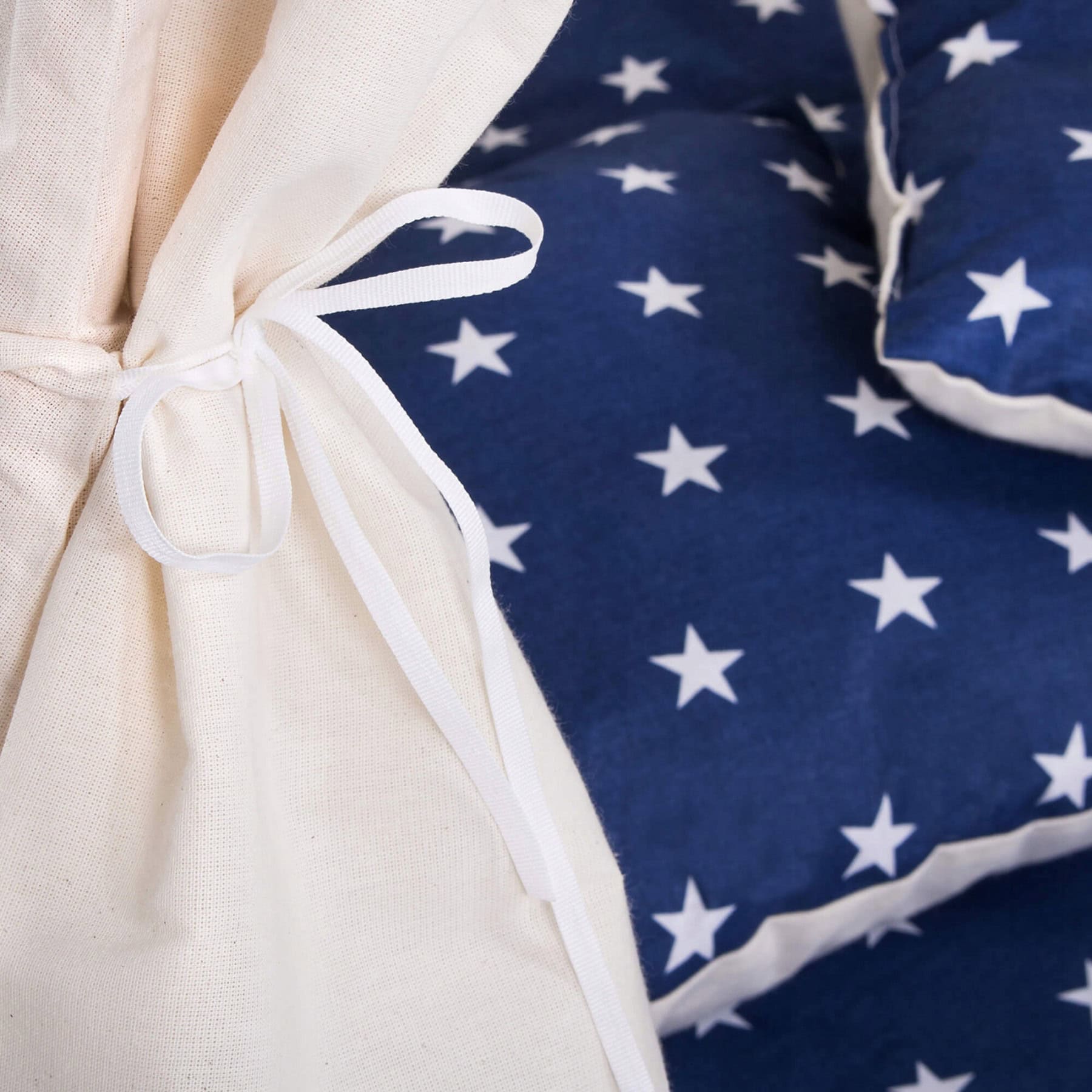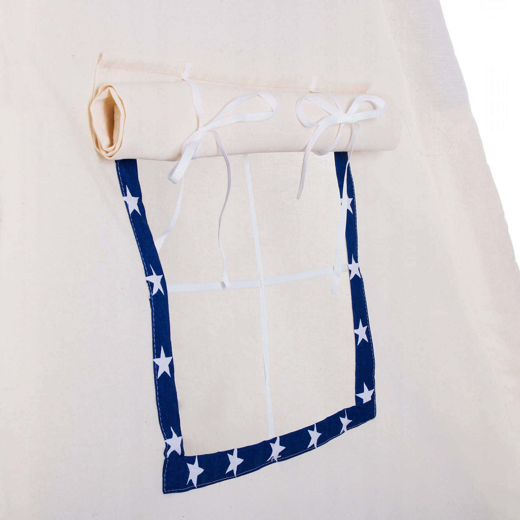 Cort copii stil indian Teepee Tent cu fereastra, covoras gros si 2 perne, alb albastru inchis cu stelute Mob360