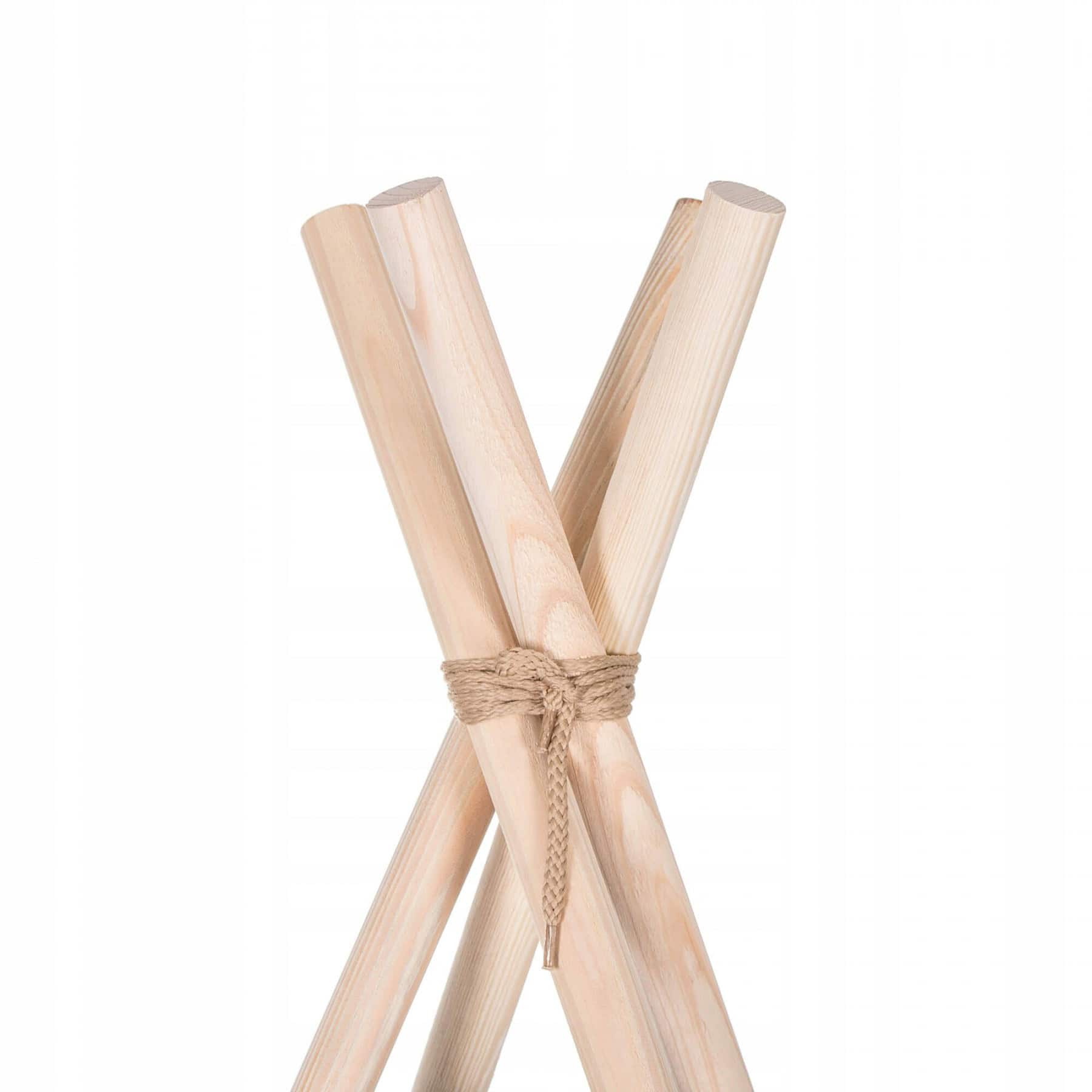 - Corturile stil indian Teepee Tent sunt cele mai la moda locuri de joaca in camerele copiilor, iar in zilele insorite de vara vor fi perfecte si in gradina sau pe terasa. Acestea va vor permite sa dezvoltati imaginatia celor mai tineri membri ai familiei in timp ce se vor juca cu fratii sau prietenii. Serile petrecute impreuna cu parintii pot fi diversificate ramanand inauntru in timp ce citesti basmele tale preferate.Productia acestui produs se caracterizeaza in primul rand prin sarguinta si grija pentru selectarea celor mai bune materiale. Tesatura din bumbac garanteaza circulatia aerului, iar umplutura din puf asigura confort in timp ce va jucati si va odihniti in interiorul cortului. Fereastra laterala are o ruleta care poate fi utilizata pentru a acoperi interiorul cortului in timpul unui pui de somn in timpul zilei. Corturile sunt potrivite pentru copii de toate varstele.Pentru a oferi cel mai mare confort posibil, salteaua este echipata cu garnituri antiaderente care, atunci cand sunt atasate de cadru, asigura ca materialul nu se misca. Pernele incluse in set sunt un accesoriu obligatoriu atunci cand petreceti timpul in cort. Copiii se pot odihni pe ele in timp ce asculta povesti sau cand se joaca.Cadrul este realizat din lemn de pin puternic. Lustruirea temeinica a betelor va asigura siguranta in timpul asamblarii si a jocului ulterior. Plierea si desfacerea cortului este extrem de simpla: conectati doi poli intre ei utilizand conectori puternici, apoi introduceti-i in tunelurile din material.