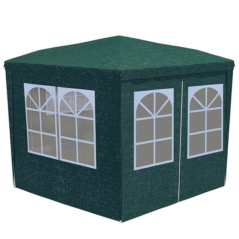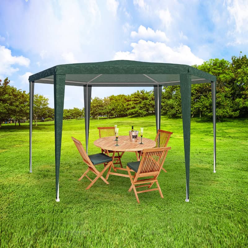 Cort pavilion de gradina hexagonal, 200×200 cm, cu pereti laterali cu ferestre, impermeabil cu rezistenta UV, verde Mob360