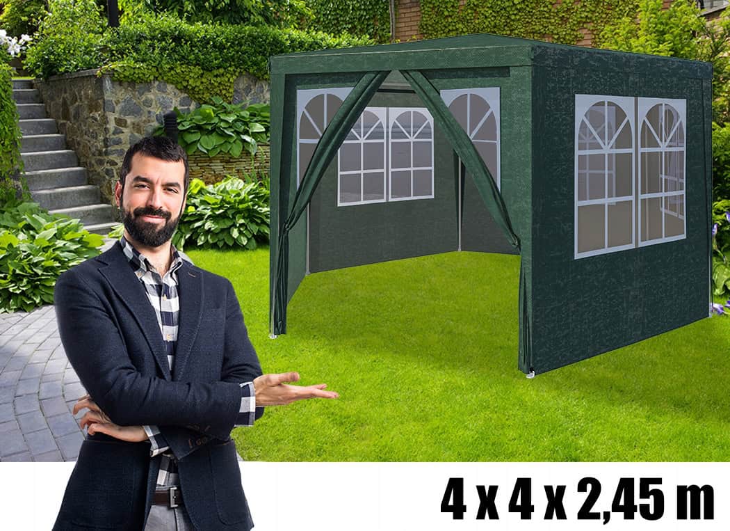 - Inclus: pavilion (acoperis, cadru, pereti, kit de fixare = cabluri + stifturi) instructiuni de asamblare