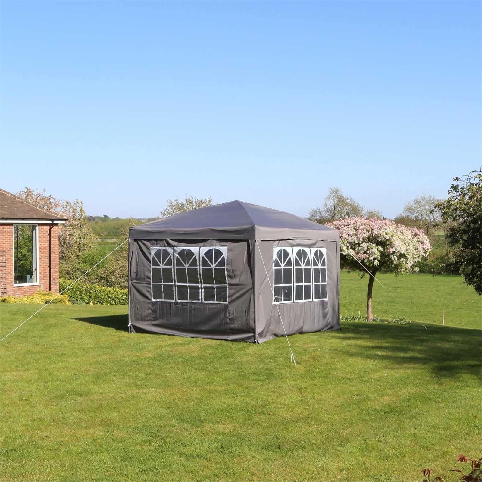 Cort pavilion de gradina pliabil automat pop-up, impermeabil, cu 4 pereti laterali, 300x300cm, gri Mob360