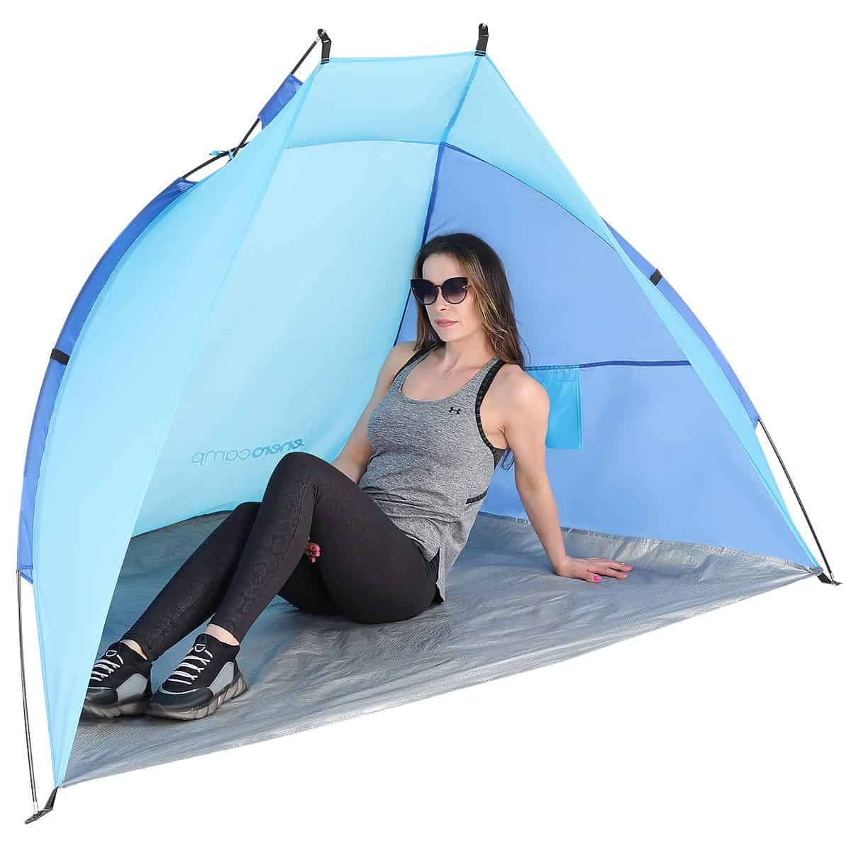 Cort plaja pentru 2 persoane, cu protectie UV si podea izolanta, 200x100x105 cm, albastru Mob360