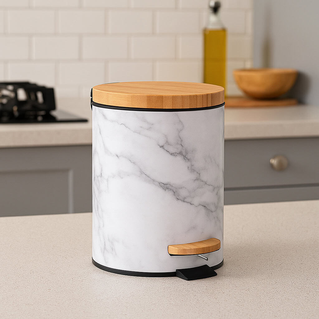 - Cos de gunoi cu pedala 5Five Lea cu inchidere soft-close, PP si otel, 17×25 cm, alb Mob360 – produs disponibil în magazinul Mob360.
