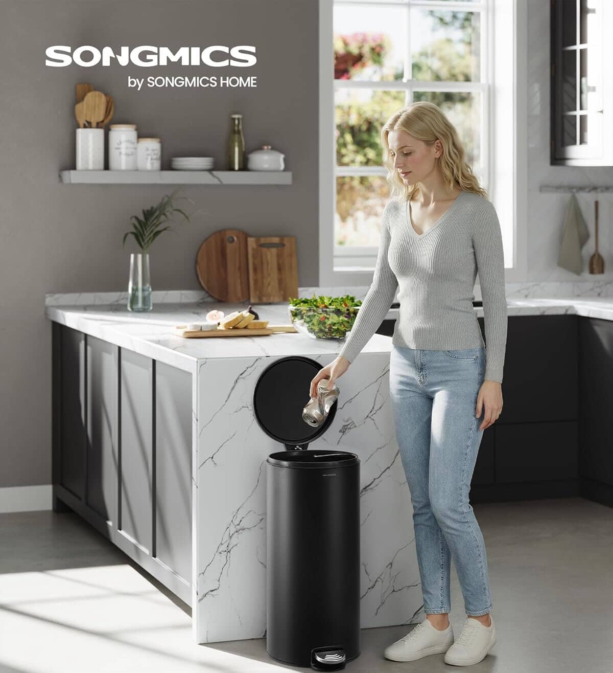 Cos de gunoi cu pedala, capac soft-close, galeata detasabila, otel, 30L, saci menajeri inclusi, negru Mob360