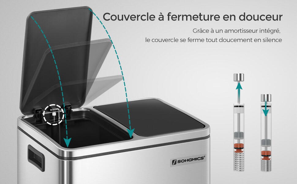 Caracteristici: Culoare: argintiu Materiale: Cos de gunoi din otel, galeata interioara din plastic PP, capac din plastic ABS Dimensiunile produsului (fara pedala): 41 x 31,5 x 47 cm (L x l x h) Inaltime cu capacul deschis: 73,5 cm. Dimensiuni ale fiecarei galeti interioare: 18,2 x 26,5 x 40 cm (L x l x ih) Dimensiuni pedala: 11 x 3,5 cm (L x l) Despre acest articol Culorile elegante si un design simplu, acest cos de gunoi este un punct de atractie in bucataria dvs.Aceasta pubela cu 2 compartimente faciliteaza reciclarea. Cu ajutorul pedalelor sale, nici macar nu va trebui sa o atingeti pentru a sorta!Chiar daca acest cos de gunoi are un exterior metalic rigid, el ramane plin de moliciune. Un mecanism special ii permite capacului sa se inchida incet si fara zgomot. Acest cos de gunoi este alcatuit din 2 garnituri interioare detasabile, care sunt usor de curatat. Daca sacul dumneavoastra se sparge si se varsa accidental, nu va faceti griji! Pur si simplu scoateti galetile cu manere metalice.Ce primesti: O pubela moderna de 15L cu 2 galeti pentru recuperarea usoara a deseurilor. Faceti ordine in casa dvs. acum cu aceasta pubela practica si eleganta.