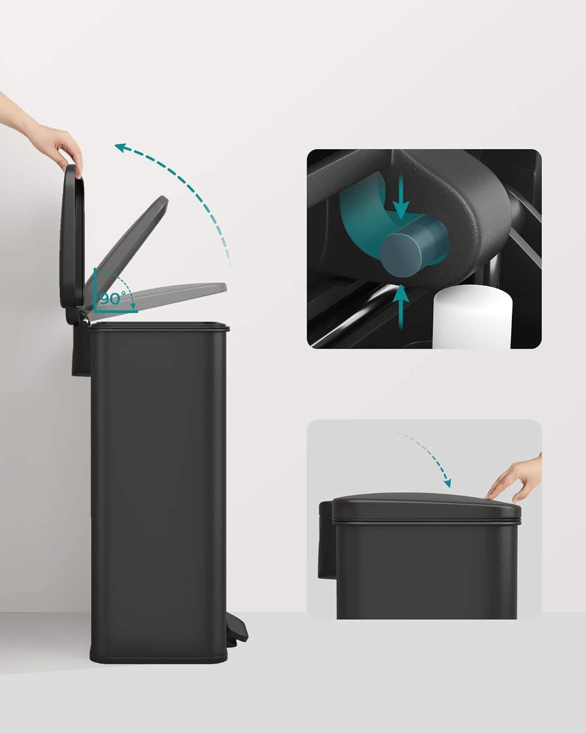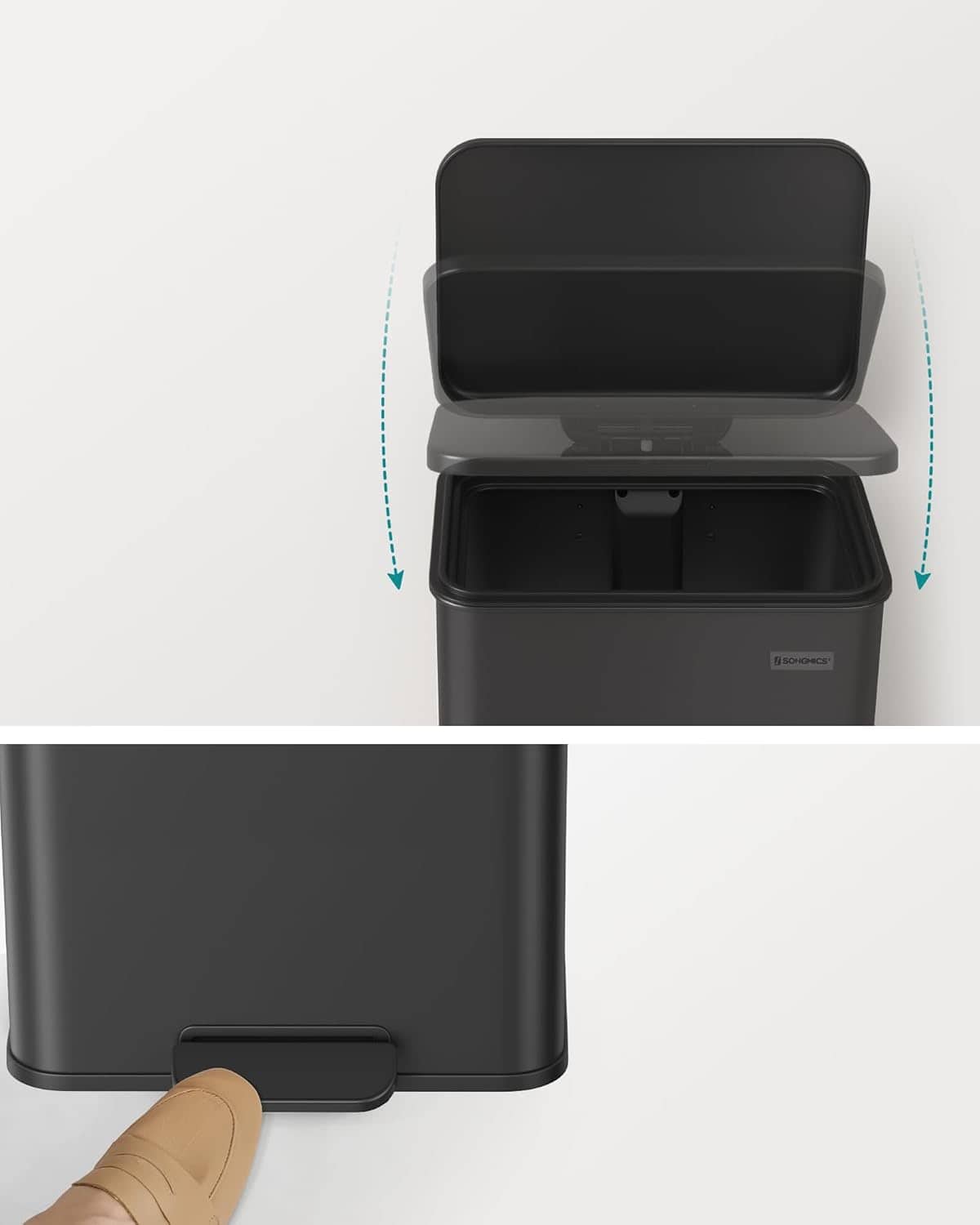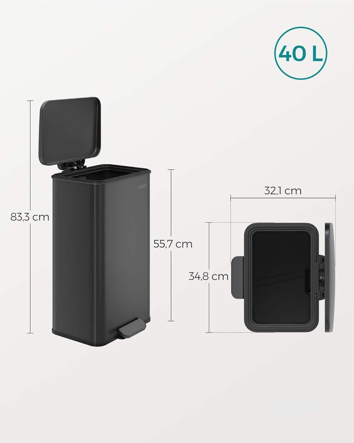 - Saci de gunoi Cateva recomandari din partea SONGMICS Cosul de gunoi este potrivit doar pentru utilizare in interior.Pentru a curata cosul de gunoi de bucatarie, va rugam sa-l stergeti cu o carpa moale si umeda si sa folositi produse de curatare blande daca este necesar.La utilizare, asezati cosul de gunoi astfel incat spatele acestuia sa fie la 5 cm de perete. Inchidere soft – Capacul pubelei se inchide incet, silentios si delicat. Nu se inchide brusc in timpul utilizarii. Acest cos de gunoi este un ajutor practic pentru eliminarea deseurilor. Otel premium – Fabricat din otel premium, cosul de gunoi de bucatarie de 40 de litri este rezistent la rugina. Pentru curatare, pur si simplu stergeti cu o carpa. Poate fi lasat deschis :