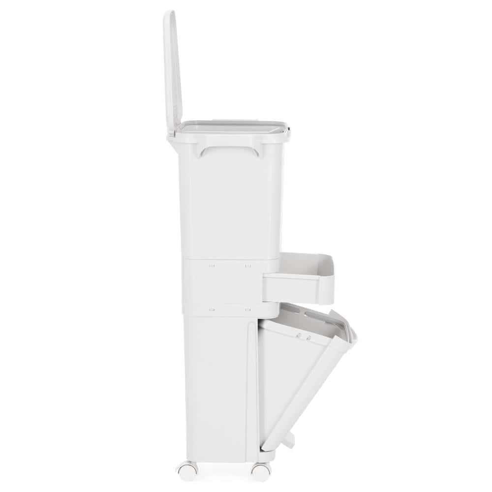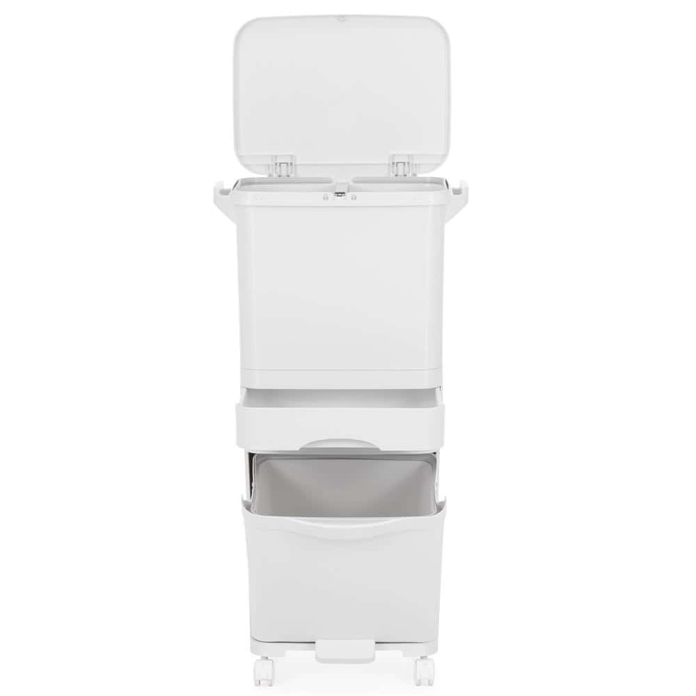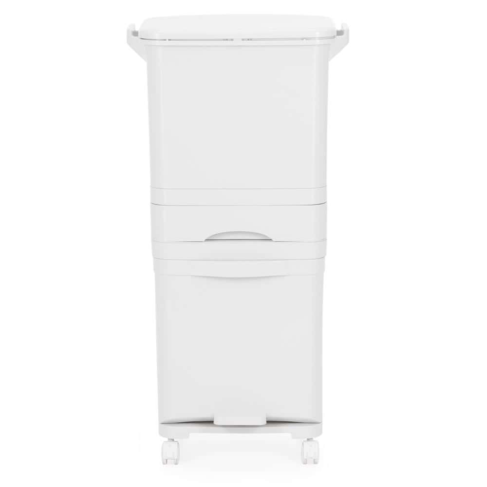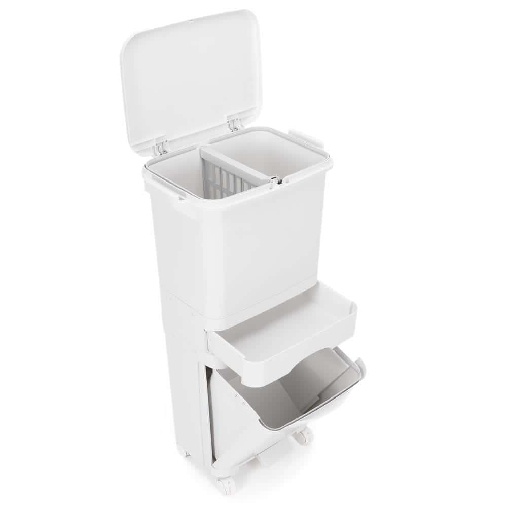 Cos de gunoi pentru colectare selectiva cu 3 compartimente, pe roti, 42 L, alb Mob360 – produs disponibil în magazinul Mob360.