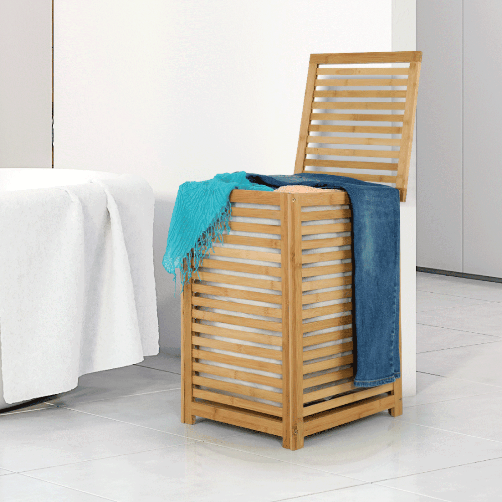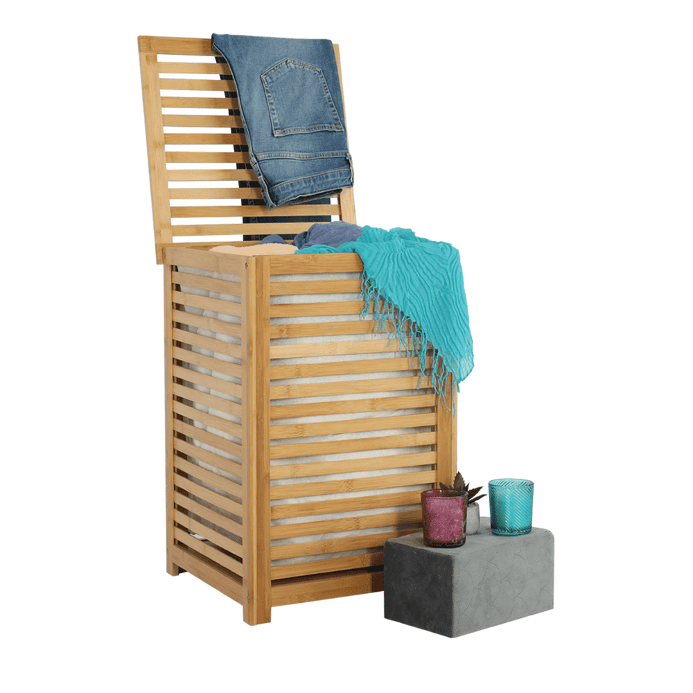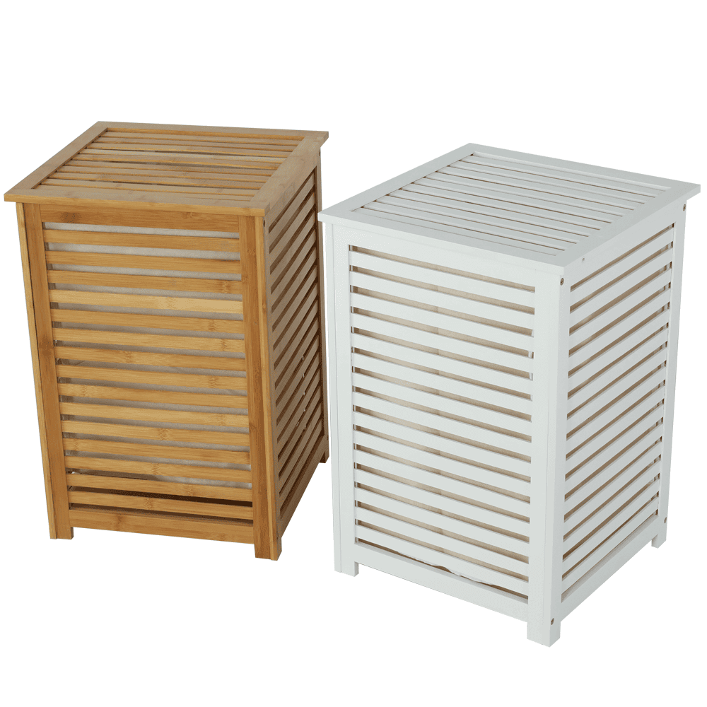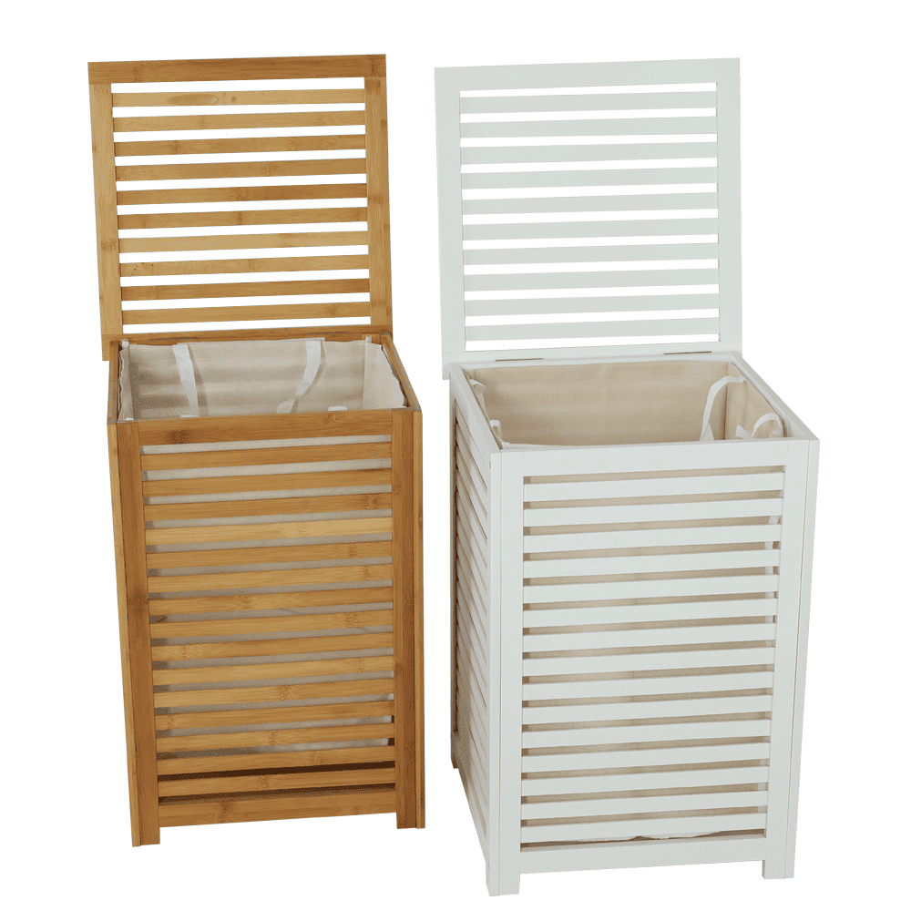 Coş de rufe, bambus lăcuit/bej, BASKET