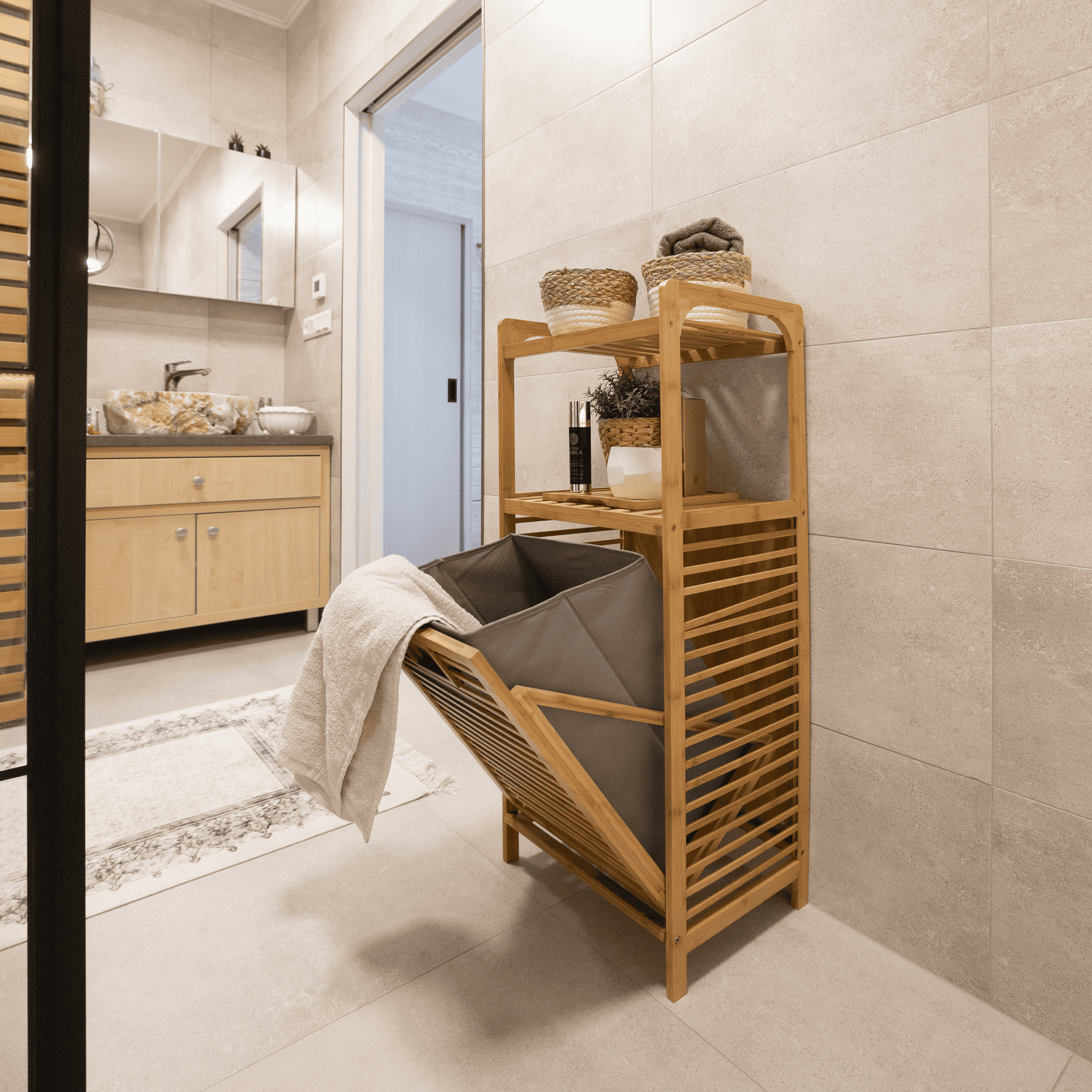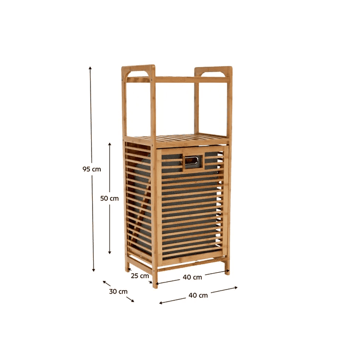 Coş de rufe, bambus natural/gri, KERI NEW