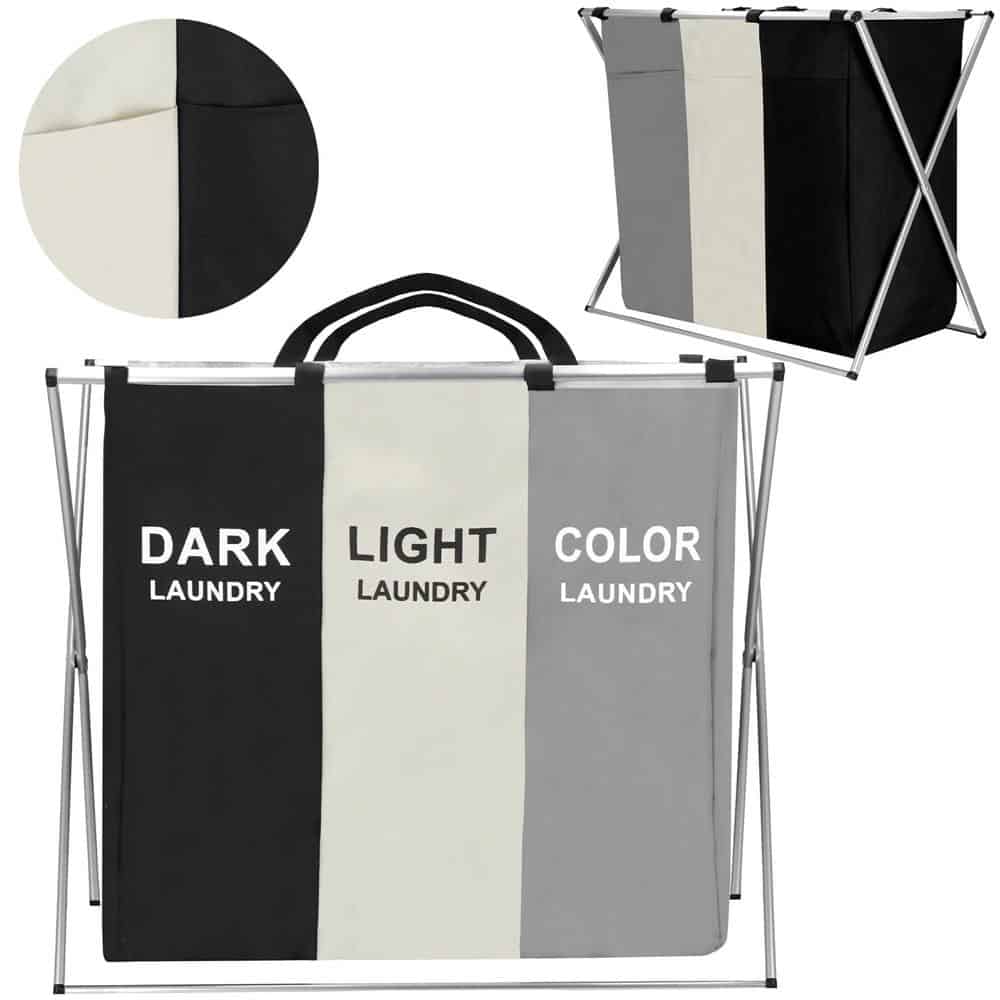 Cos de rufe cu 3 compartimente, cadru aluminiu, 68x40x60cm, 146 litri Mob360 – produs disponibil în magazinul Mob360.