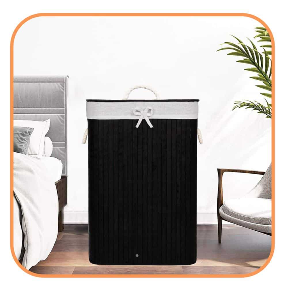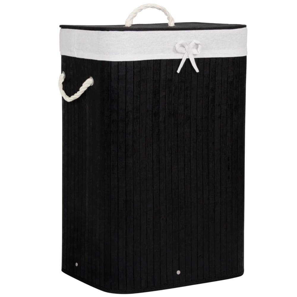 Cos de rufe cu capac, din bambus cu sac textil detasabil, 72 litri, 40x30x60 cm, negru Mob360