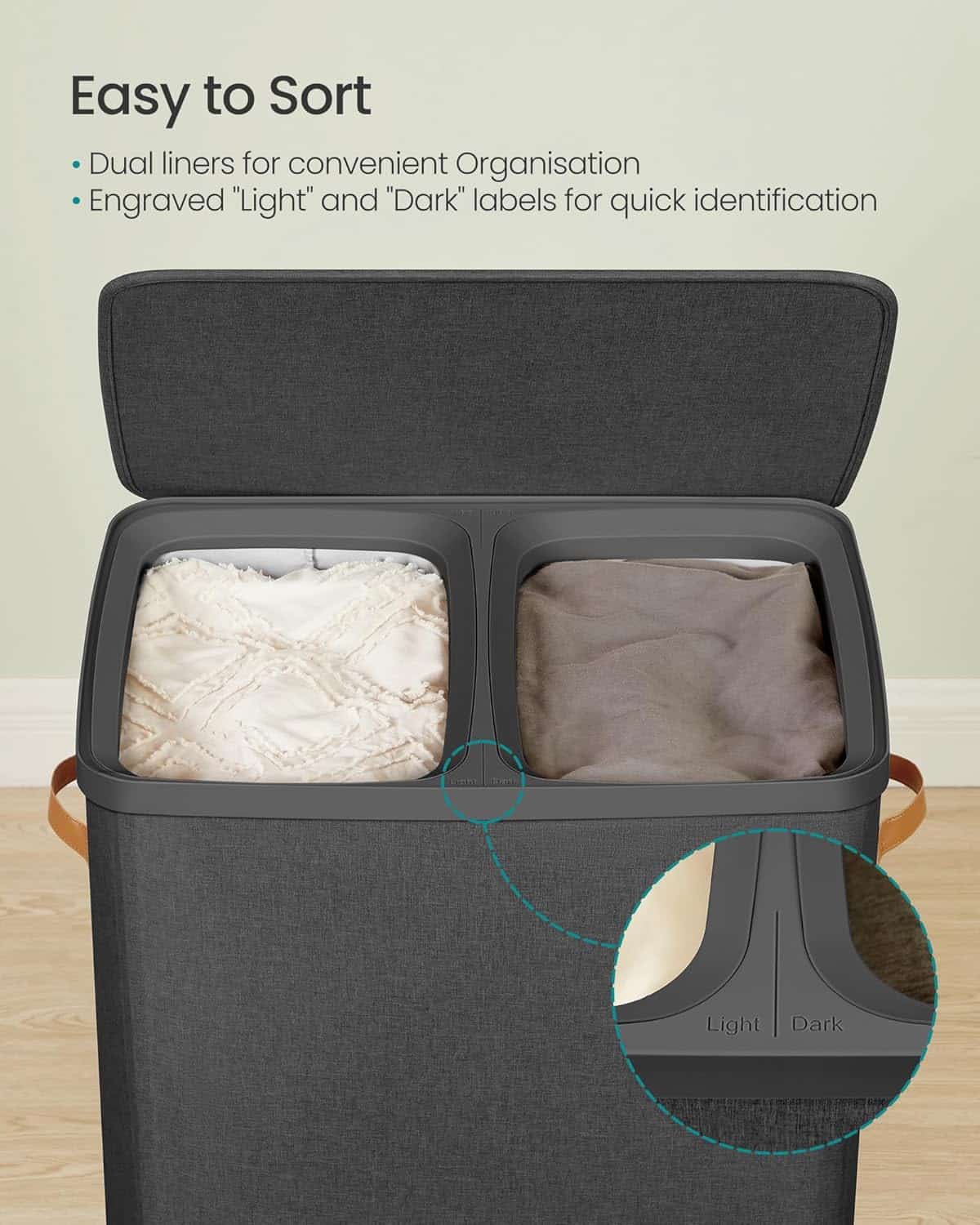 Cos rufe cu 2 compartimente si capac, saci detasabili cu maner, 170 litri, 56x40x75 cm, negru Mob360