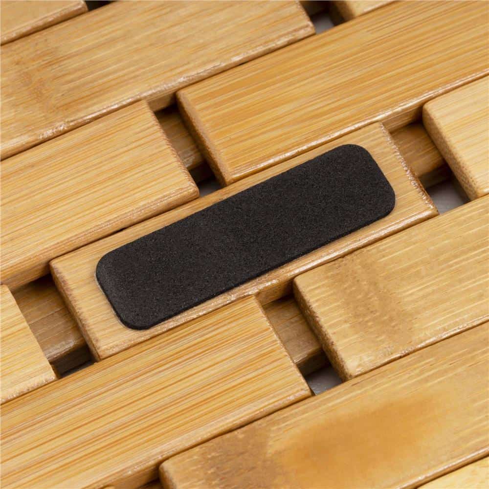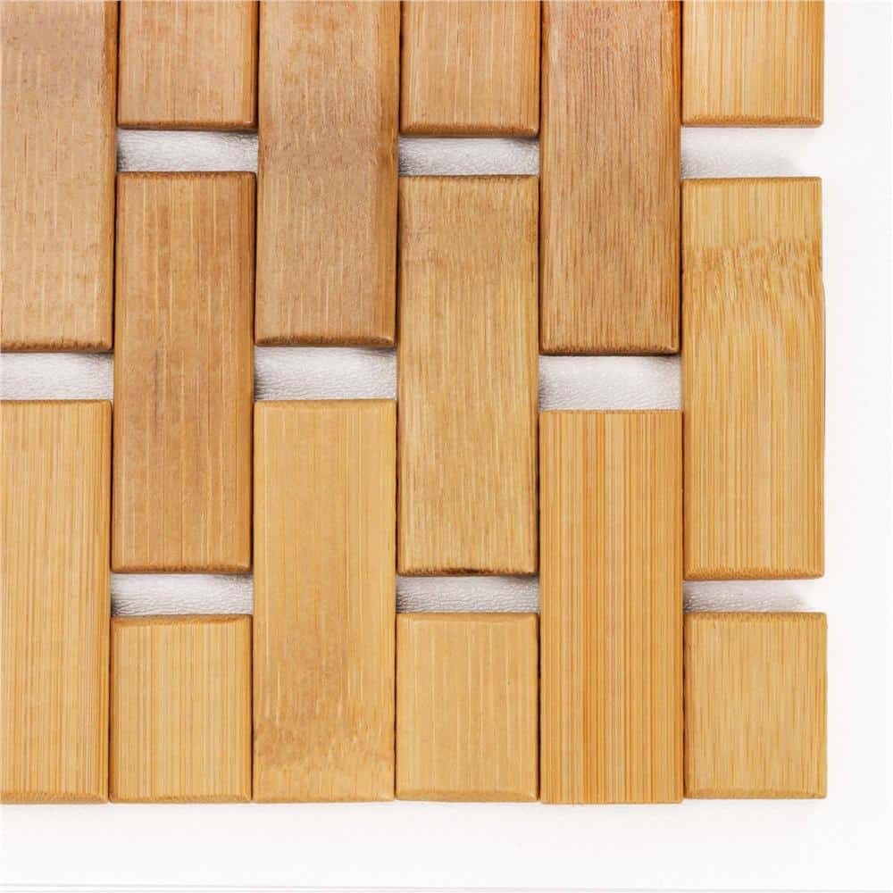 Covor antiderapant din bambus pentru baie, lamele verticale, 50×80 cm, maro natur Mob360