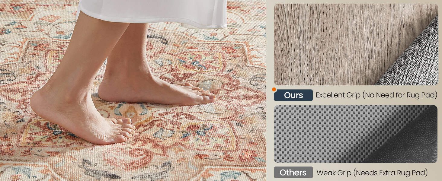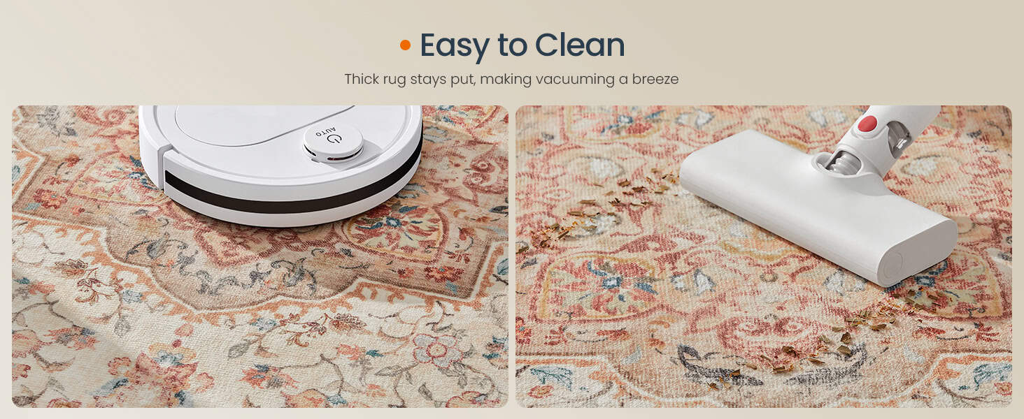 Specificatii: Culoare: Cappuccino, bej Material: 700 g/㎡ Poliester (±15 g/㎡), 200 g/㎡ Pasla (±5 g/㎡), 650 g/㎡ TPR (cauciuc termoplastic) (±10 g/㎡) Dimensiunea produsului: Lungime: 170 cm Latime: 120 cm Note: Din cauza variatiilor de afisare a monitorului, poate exista o usoara discrepanta de culoare intre imagini si elementul real. Covorul se masoara atunci cand este asezat plat; prin urmare, o variatie de dimensiune de ±2-3 cm este considerata in intervalul normal. Covorul este livrat intr-un pachet pliat. Dupa ce l-ati primit, va rugam sa-l desfaceti si sa-l lasati sa se aseze timp de 48 de ore. Acest lucru va permite covorului sa-si recapete in mod natural forma plata. Despre acest articol Moale : Bucurati-va de senzatia luxoasa a fibrelor de poliester de 700 g/㎡ combinate cu un strat intermediar de 200 g/㎡ pasla, oferind o catifelare exceptionala pentru primul pas in afara patului. Farmecul vintage: Experimentati un amestec unic de eleganta atemporala si confort modern cu acest covor. Modelele lor complicate si culorile bogate creeaza o atmosfera calda si primitoare, transformand orice spatiu. Durabil si spalabil la masina: Facut din materiale premium, acest covor de zona lavabil la masina poate rezista unei utilizari prelungite. In mod remarcabil, acesta isi pastreaza textura moale chiar si dupa mai multe spalari, oferind un confort consistent in timp. Anti-alunecare si versatil: Suportul covorului de zona utilizeaza TPR pentru o performanta anti-alunecare superioara, ceea ce il face perfect potrivit pentru diferite tipuri de podele, inclusiv lemn de esenta tare, gresie si altele. Transport si depozitare fara efort: Covorul pentru camera de zi este pliabil, facilitand depozitarea si transportul. Indiferent daca trebuie sa il mutati pentru curatare sau va bucurati de reimprospatarea aspectului camerei, designul pliabil ofera un mare confort.