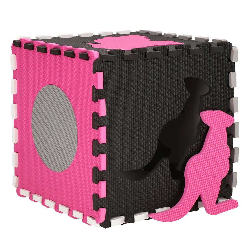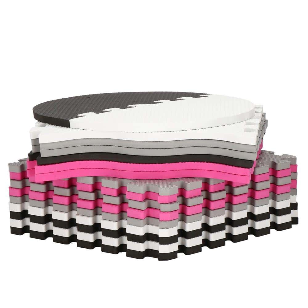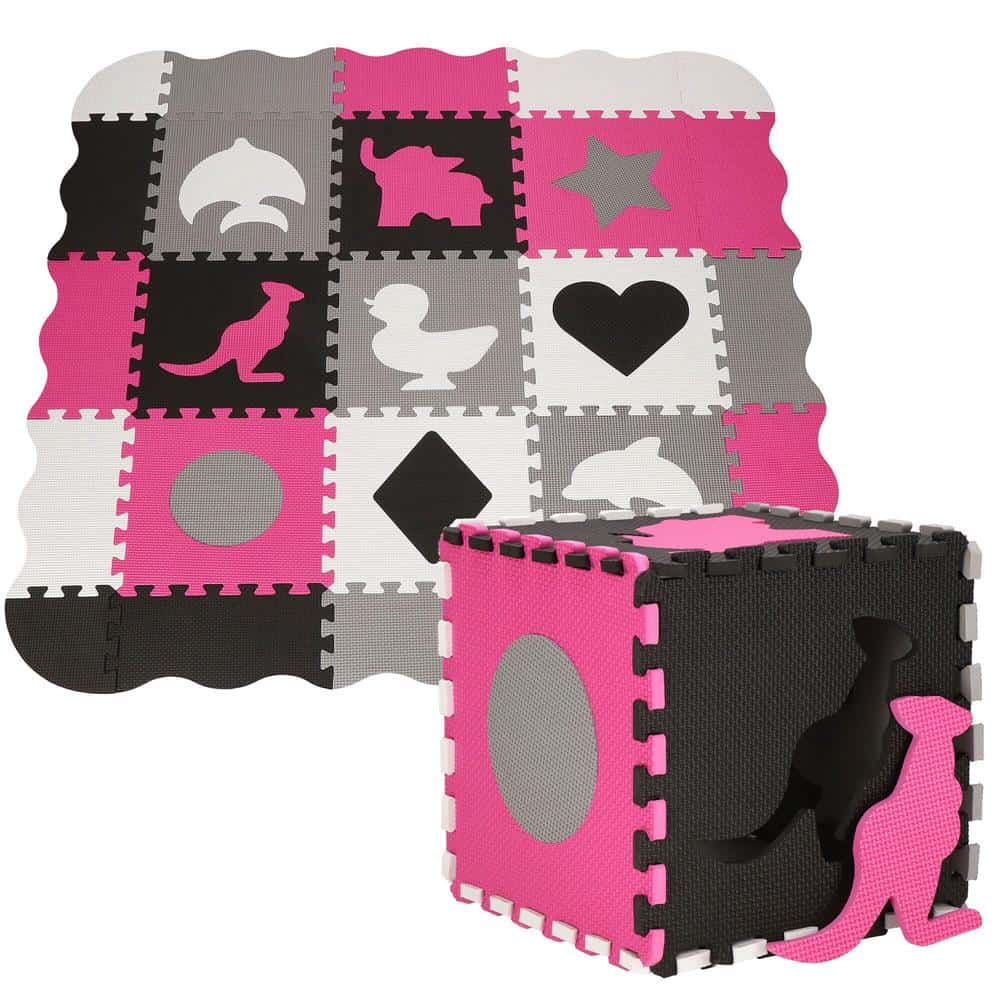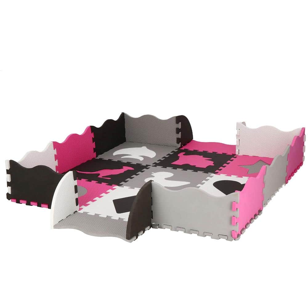 Covor din spuma pentru copii, tip puzzle forme, 34 piese, termoizolant, 120×120 cm, gri roz Mob360