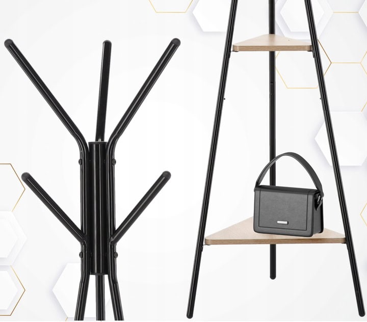 Inaltime: 180 cm – potrivita pentru depozitarea hainelor mai lungi si a mai multor accesorii. Culoare: Negru – universal si elegant, adaugand caracter interiorului. Material: Metal si MDF – o legatura durabila si solida care asigura stabilitatea structurii. Cuierul de sine statator este o solutie exceptional de practica si eleganta, care va functiona bine in orice casa sau birou. Constructia sa solida, de sine statatoare, permite o utilizare convenabila fara a fi nevoie sa gauriti in pereti, ceea ce este deosebit de important in spatiile inchiriate. Este usor de transportat, ceea ce il face extrem de versatil – il puteti amplasa in hol, dressing, dormitor sau birou, ajustandu-i pozitia la nevoile dumneavoastra curente. Acest cuier cu o inaltime de 180 cm ofera spatiu amplu pentru depozitarea diferitelor tipuri de imbracaminte exterioara, cum ar fi paltoane, jachete, esarfe, palarii si genti, iar baza sa stabila din MDF asigura durabilitate si soliditate chiar si sub sarcini mai grele. Rafturi: Cuierul este echipat cu doua rafturi practice care ii sporesc functionalitatea. Datorita lor, puteti depozita nu numai imbracaminte exterioara, ci si genti, palarii si alte accesorii mici pe care merita sa le aveti intotdeauna la indemana. Raftul inferior este ideal pentru genti mai mari, pastrand spatiul din hol sau din dressing ordonat, in timp ce raftul superior poate fi folosit pentru depozitarea obiectelor mai mici. Manere: Acest cuier cu o inaltime de 180 cm ofera spatiu amplu pentru depozitarea diferitelor tipuri de imbracaminte exterioara, cum ar fi paltoane, jachete, esarfe, palarii si genti, iar baza sa stabila din MDF asigura durabilitate si soliditate chiar si sub sarcini mai grele. Umerasul are 6 manere, ceea ce permite organizarea comoda a hainelor si faciliteaza pastrarea spatiului ordonat. Desing universal: Culoarea neagra a cuierului este o alegere universala si eleganta care confera interiorului un caracter modern. Datorita culorii sale neutre, cuierul se va potrivi armonios atat in amenajarile interioare deschise, cat si in cele intunecate, oferindu-le expresivitate. Este o solutie ideala pentru iubitorii de accesorii minimaliste, dar practice – designul sau elegant il face nu doar un element functional de echipament, ci si un decor elegant al camerei.