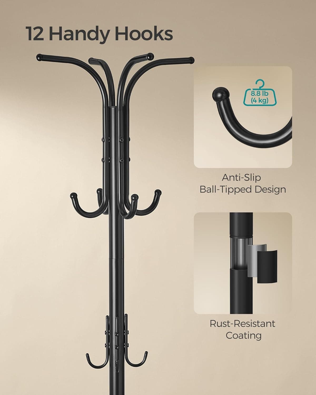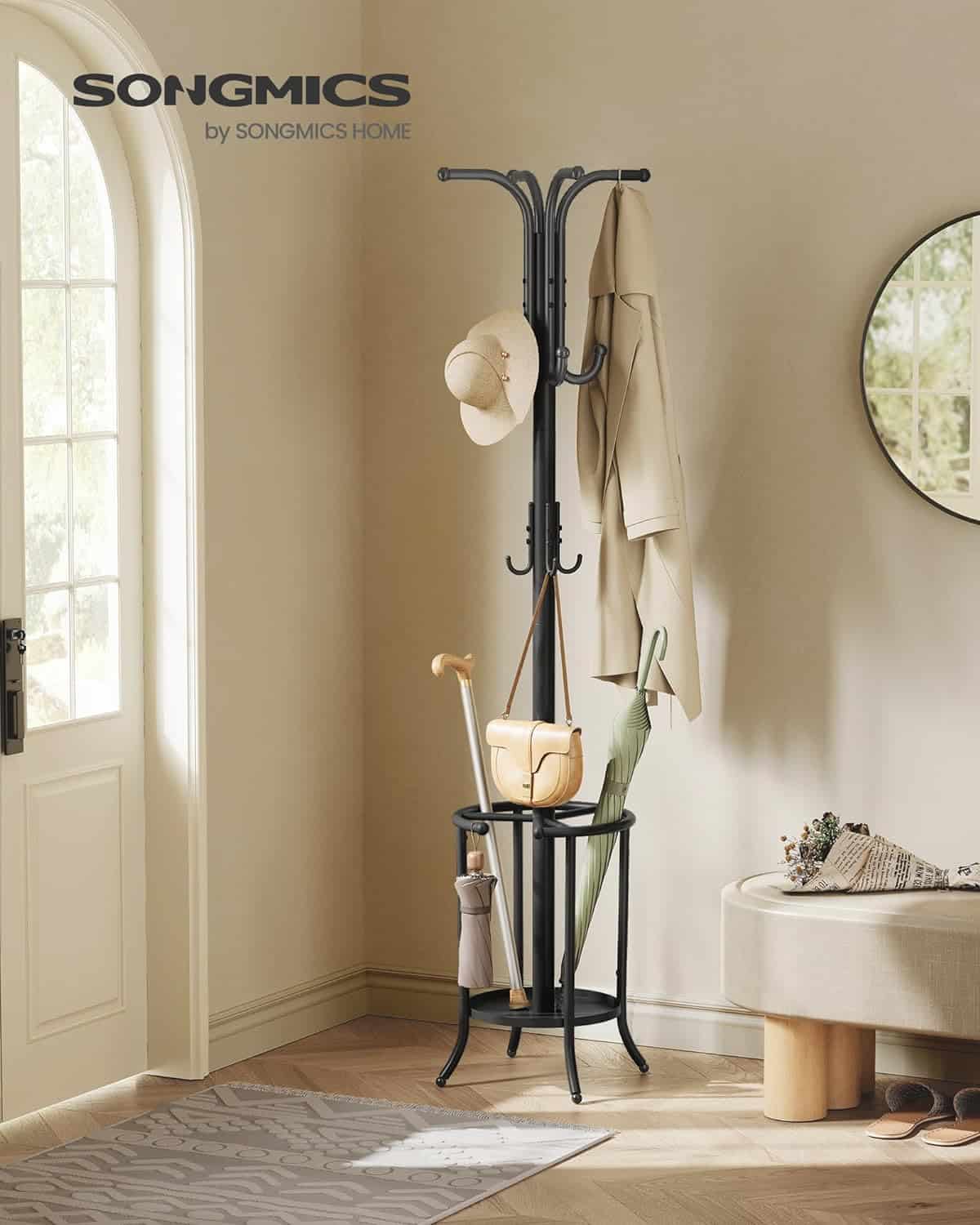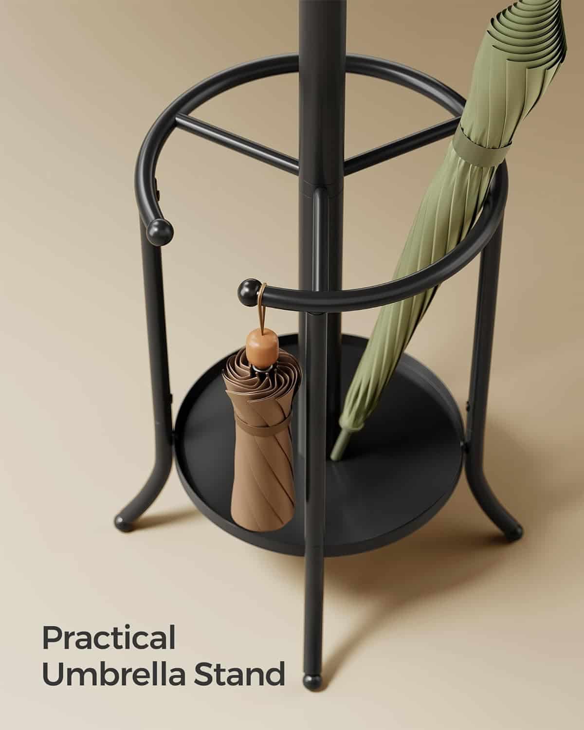 Cuier pentru haine, cu suport de umbrele, 12 agatatori, 175 cm, negru Mob360