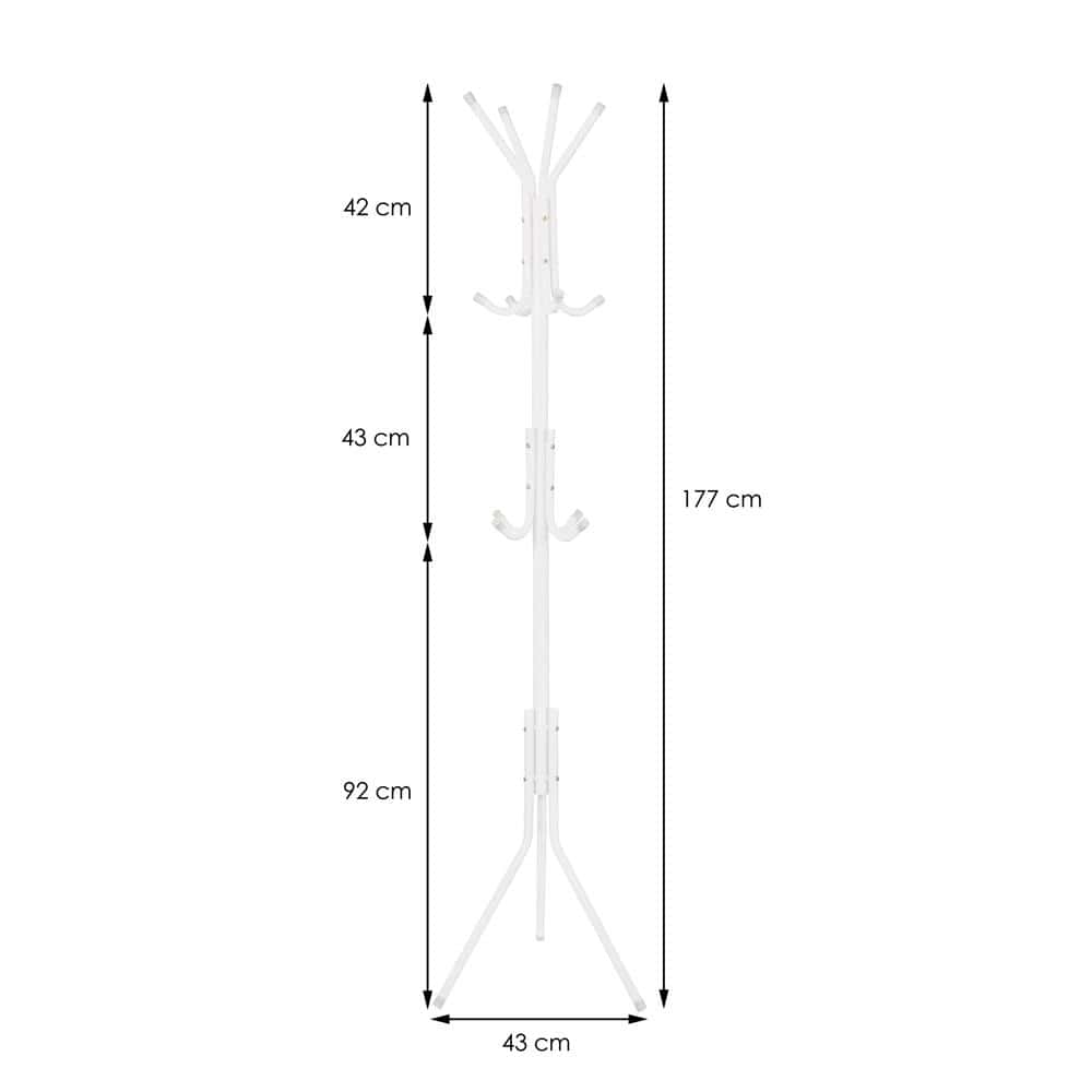 Cuierul poate fi amplasat pe coridor sau in camera de langa usa de intrare. Poate fi utilizat pentru imbracaminte exterioara sau palarii. Un aspect modern ce va adauga cu siguranta farmec unui interior deja decorat. Un avantaj suplimentar al cuierului este greutatea acestuia, care va permite sa schimbati cu usurinta locul sau. Pentru ca cuierul sa fie cat mai stabil, baza are trei picioare. Designul modern si utilizarea materialelor de cea mai buna calitate garanteaza ca va rezista mult timp. Functioneaza excelent acasa, intr-un magazin, intr-un birou sau in salile de asteptare. Parametri: Inaltime totala: 177 cmInaltimea umeraselor superioare: 42 cmInaltimea de la umerasele inferioare pana la umerasele superioare: 43 cmInaltimea de la sol pana la umerase de jos: 92 cmDimensiune picior la picior: 43 cmSarcina maxima pe cuier: 16 kgDiametru rama: 16 mmDiametru brate: 8 mm