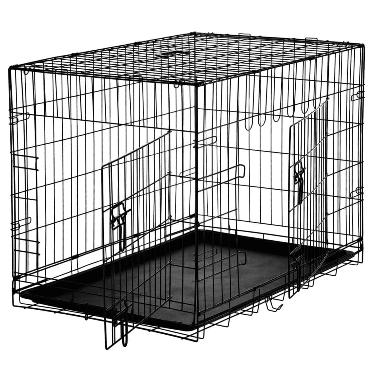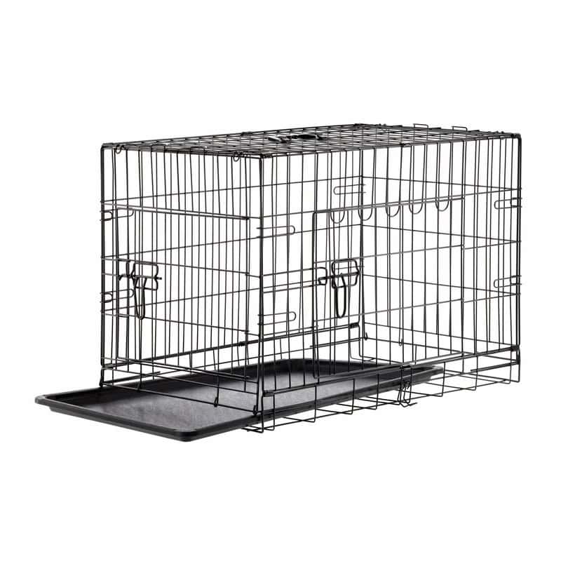 Cusca metalica pentru caine XL, pliabila, cu tava detasabila si maner, 91x57x63 cm, negru Mob360