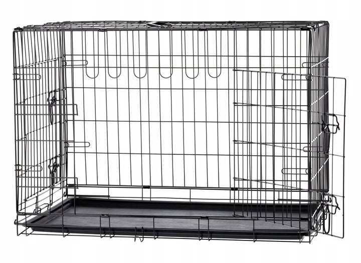 Cusca metalica pliabila pentru animale, cu maner si tava detasabila, 107x69x76 cm, negru Mob360 – produs disponibil în magazinul Mob360.