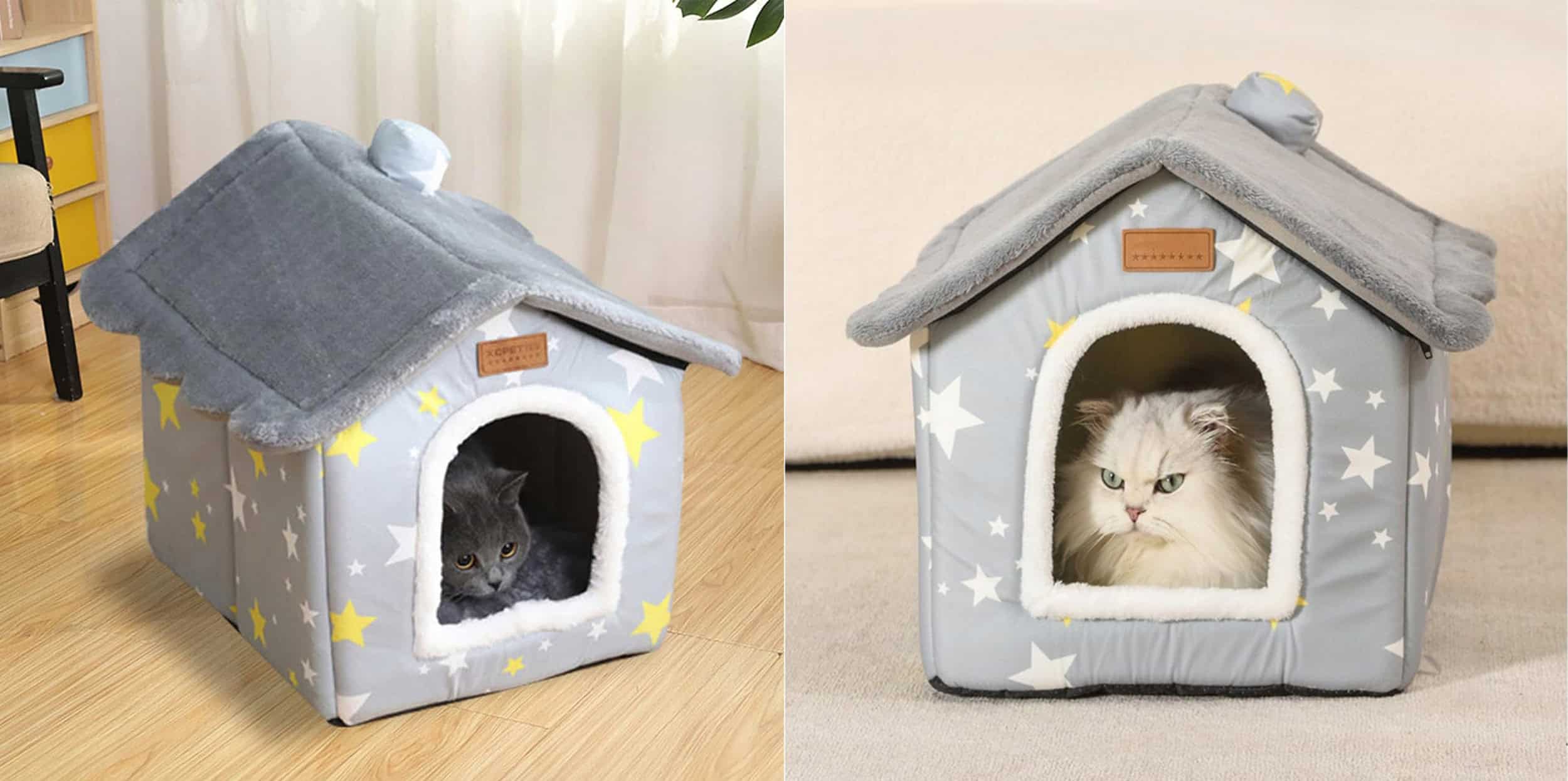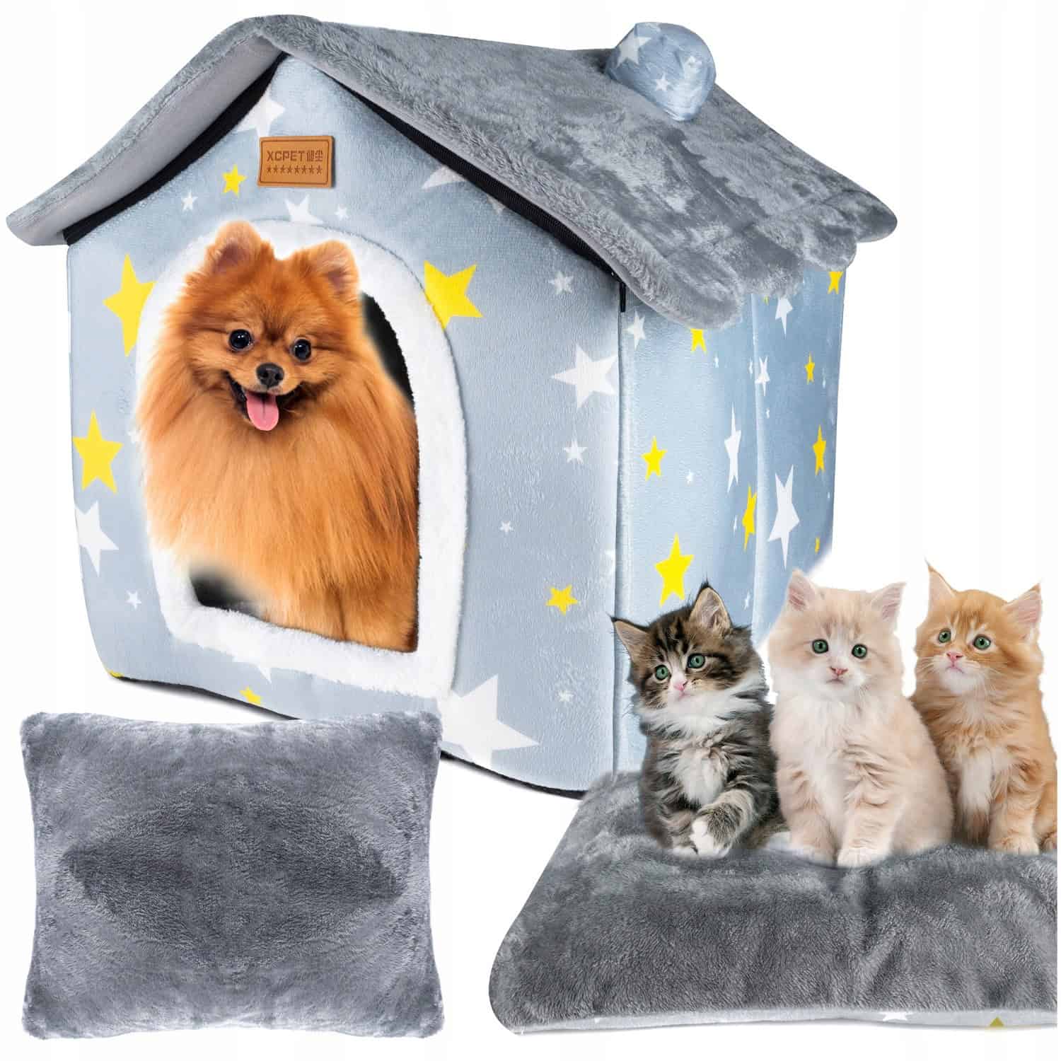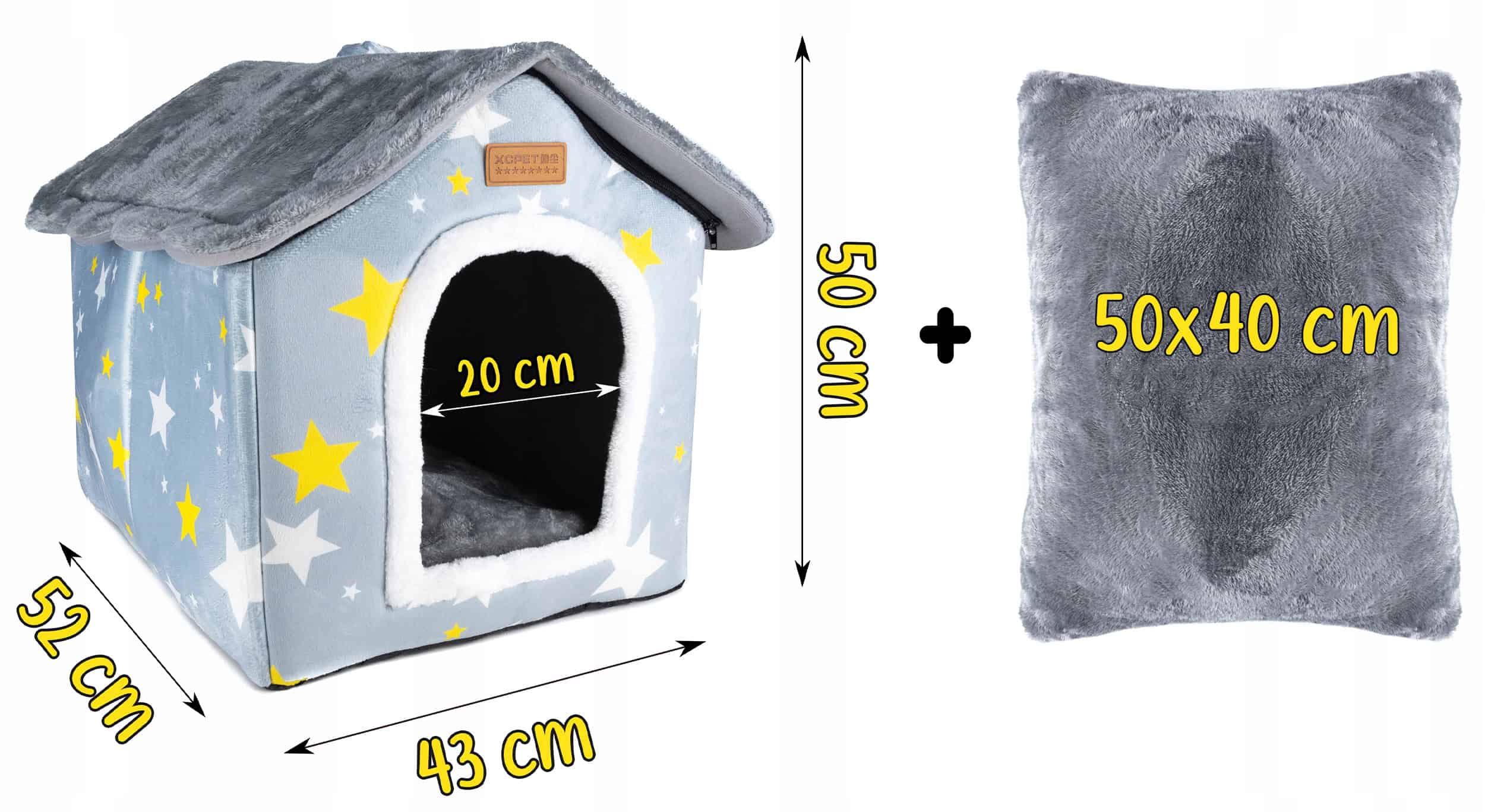 Caracteristicile produsului: dimensiuni: 52x43x50cm material: 60% catifea, 40% bumbac Dimensiuni intrare: 20x26cm perna detasabila in interior (desfacuta, cu insertie detasabila) acoperis detasabil Casa ofera animalului un sentiment de siguranta si intimitate. Este locul perfect pentru a te ascunde si pentru a te calma dupa o zi lunga de joaca. Casa dispune de o perna detasabila (deschipabila, cu insertie detasabila), care ofera animalului tau un loc placut de dormit si odihna. Este adapostul perfect, mai ales in zilele reciAsamblarea casei nu este complicata si nu necesita unelte specializate Design estetic: poate fi un element atractiv al designului interior al casei sau gradinii tale. Asamblare usoara: Pat incorporat mare pentru caini sau pisici, de inalta calitate, in forma de casa. Caldura si confort: Casa dispune de o perna detasabila (deschipabila, cu insertie detasabila), care ofera animalului tau un loc placut de dormit si odihna. Este adapostul perfect, mai ales in zilele reci Confectionata din materiale durabile si placute la atingere. Un pat mare incorporat de inalta calitate pentru caini sau pisici, in forma de casa. Este confectionat din materiale durabile si placute la atingere.